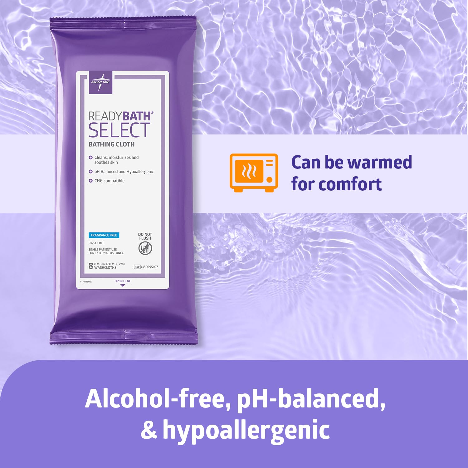 • Stay comfortable while cleansing - ReadyBath Select bathing wipes are formulated to soothe even the most sensitive skin and also eliminate odors and kill germs, and can be warmed to comfort skin