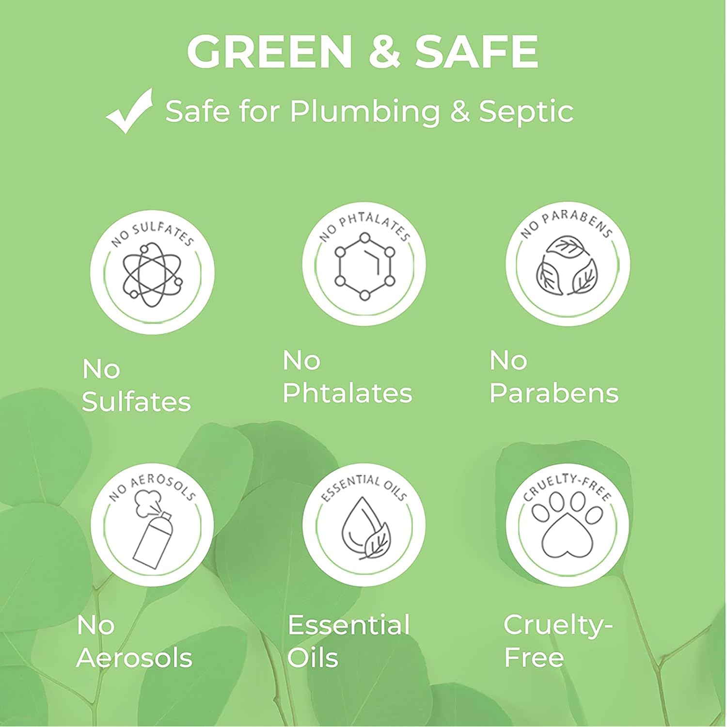 • ECO-FRIENDLY FORMULA. Made of all-natural essential oils, Just A Drop is a safe and eco-friendly alternative to aerosols. The compact bottle contains no parabens, sulfates, aerosols, or phthalates and is safe for plumbing and septic systems.