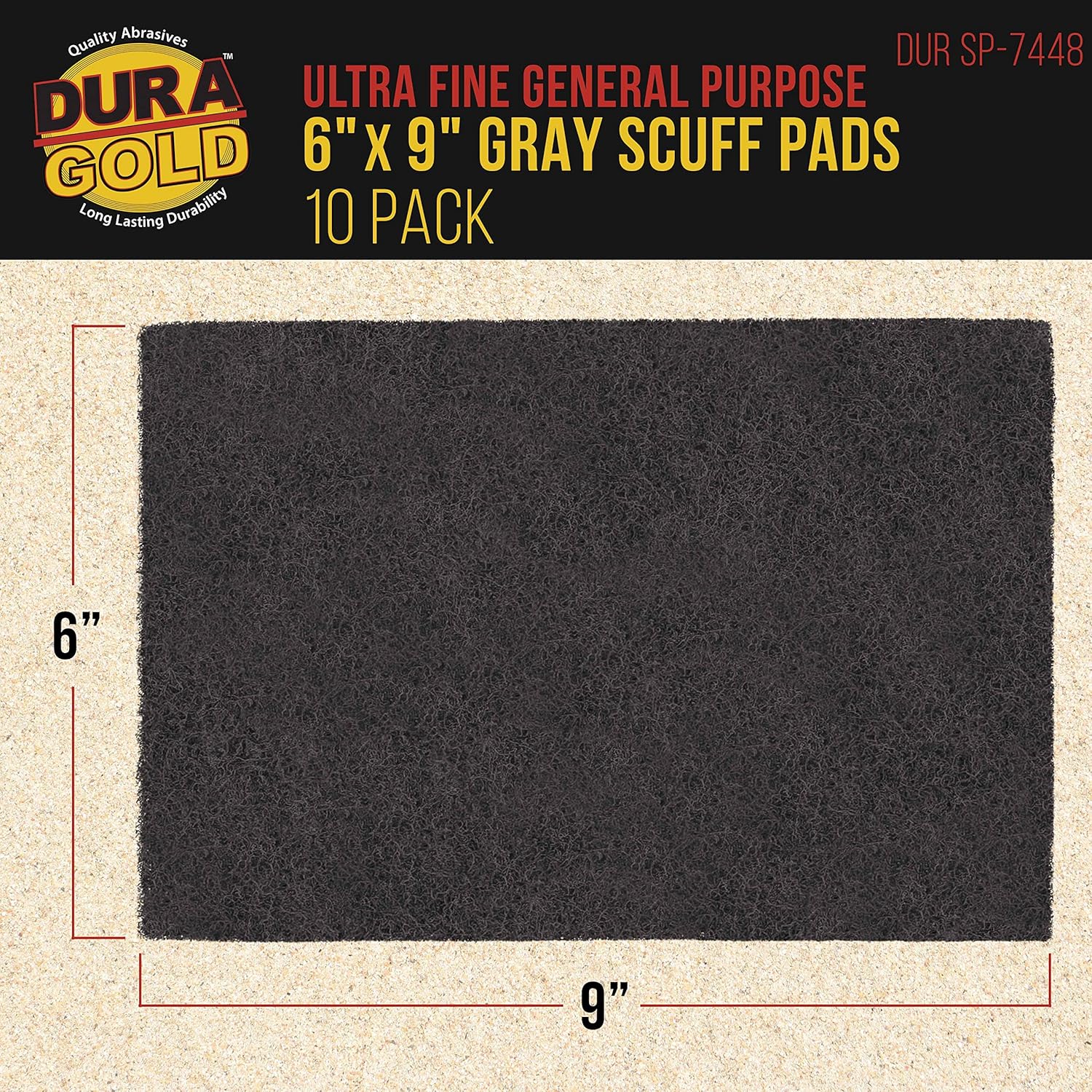 • Box of 10 Dura-Gold Premium 6" x 9" Premium Ultra Fine General Purpose Gray Scuffing Pads. High-performance gray ultra-fine scuffing pads that deliver a very fine aluminum oxide abrasive cut comparable to about a P800 grit sandpaper cut.