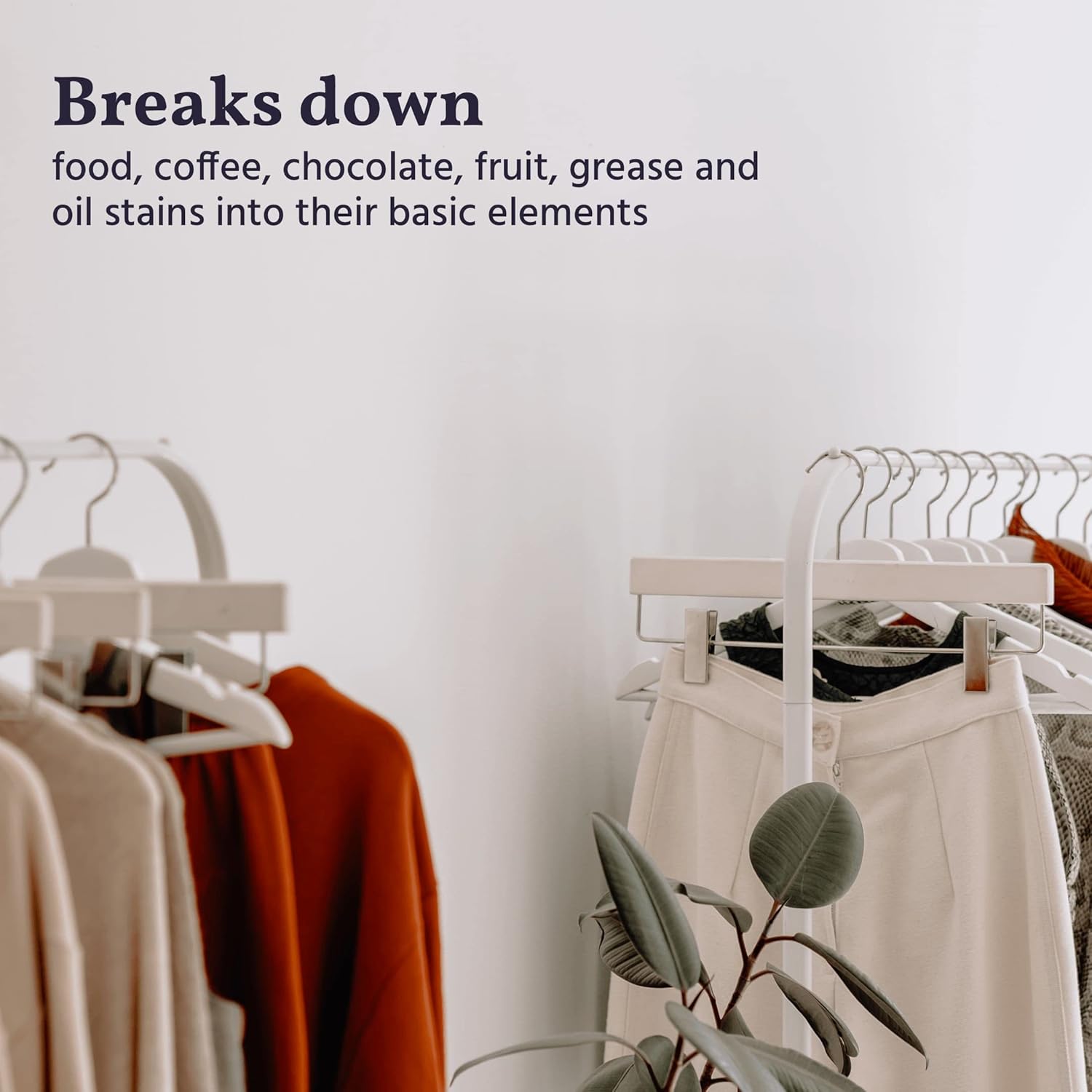 • EVEN THE TOUGHEST STAINS AND SPOTS DISAPPEAR. Coffee, tea, blood, chocolate, and fruit juice stains simply fall apart when our plant-based enzymes break down the organic proteins, starches, and oils that caused them.