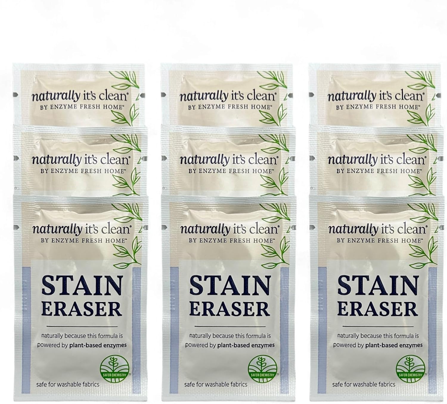 Naturally It's Clean Stain Eraser, Natural Enzymes Based/Biodegradable Instant Stain Removal, Spot Wipe Removes Wine, Coffee, Soda, Spills, Odor on Clothes, Bags, 60 Count (Pack of 1)