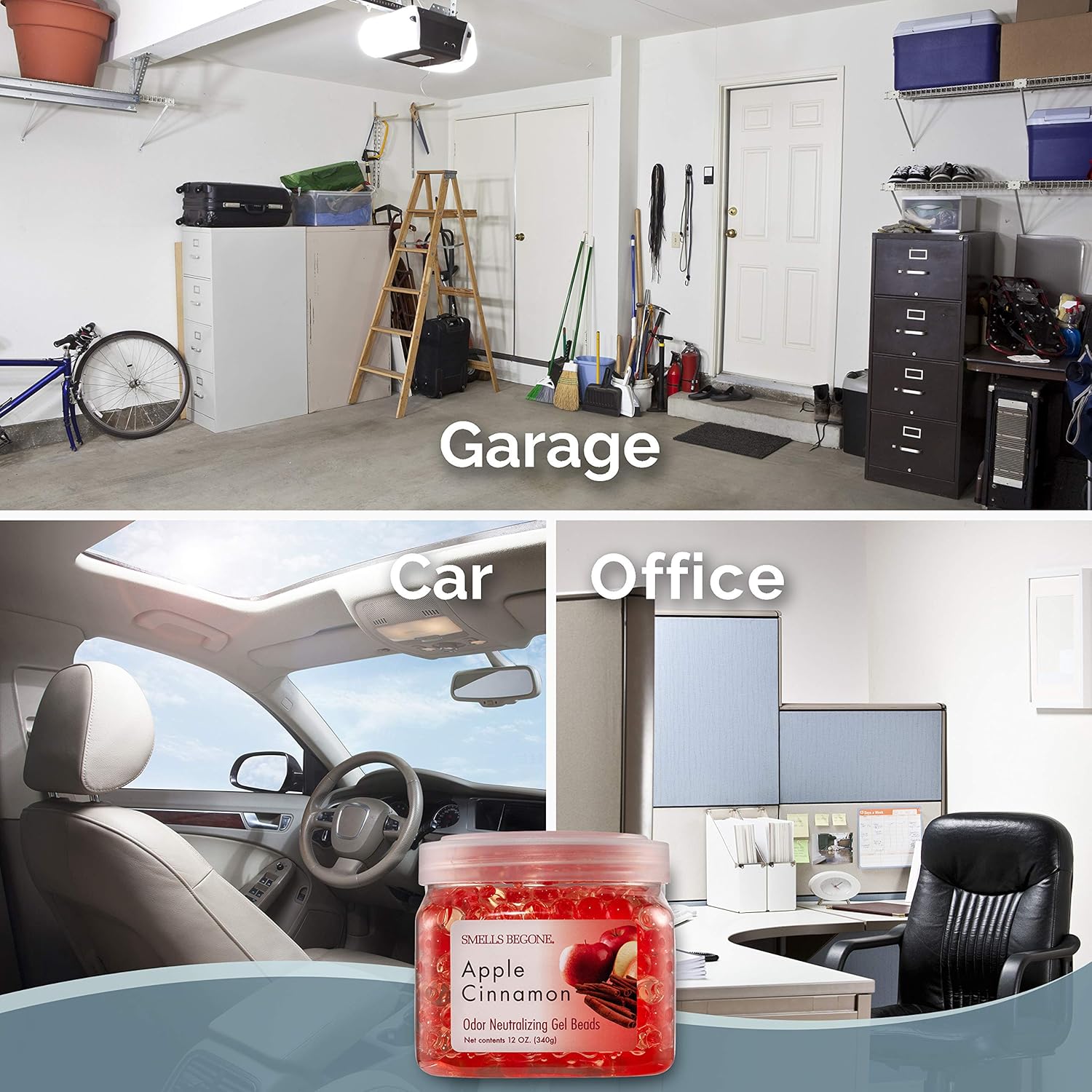 SMELLS BEGONE Odor Eliminator Gel Beads - Air Freshener - Eliminates Odor in Bathrooms, Cars, Boats, RVs and Pet Areas - Made with Essential Oils - Apple Cinnamon Scent - 12 Ounce