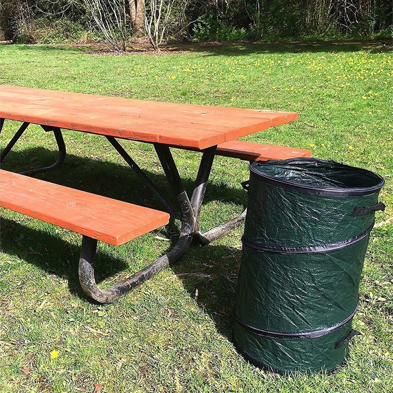 • Generous 29-gallon capacity: holds up to 111 liters of waste and fits standard-to-large garbage bags; ideal for group camping, picnics, and cleanup tasks