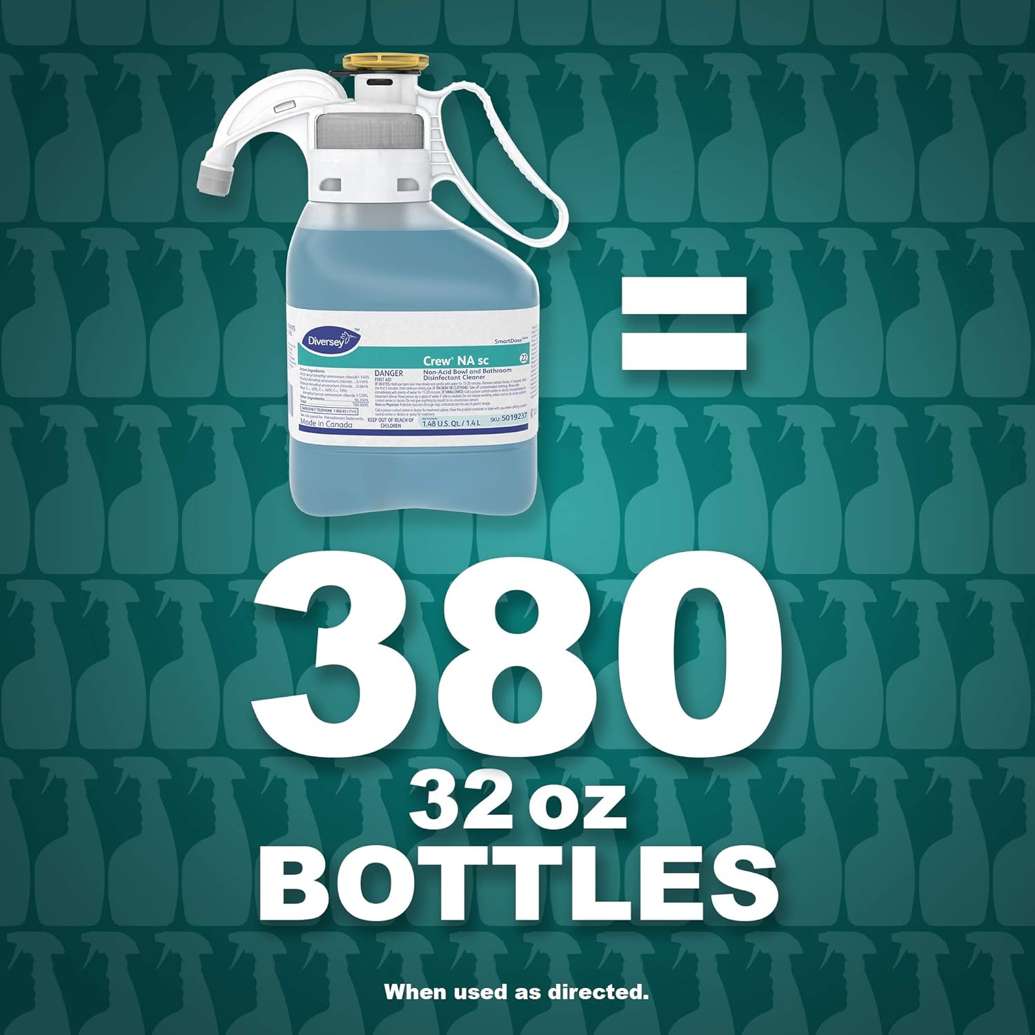 Diversey Crew Non-Acid Bowl And Bathroom Disinfectant Cleaner, Floral, 47.3 Oz, 2/carton