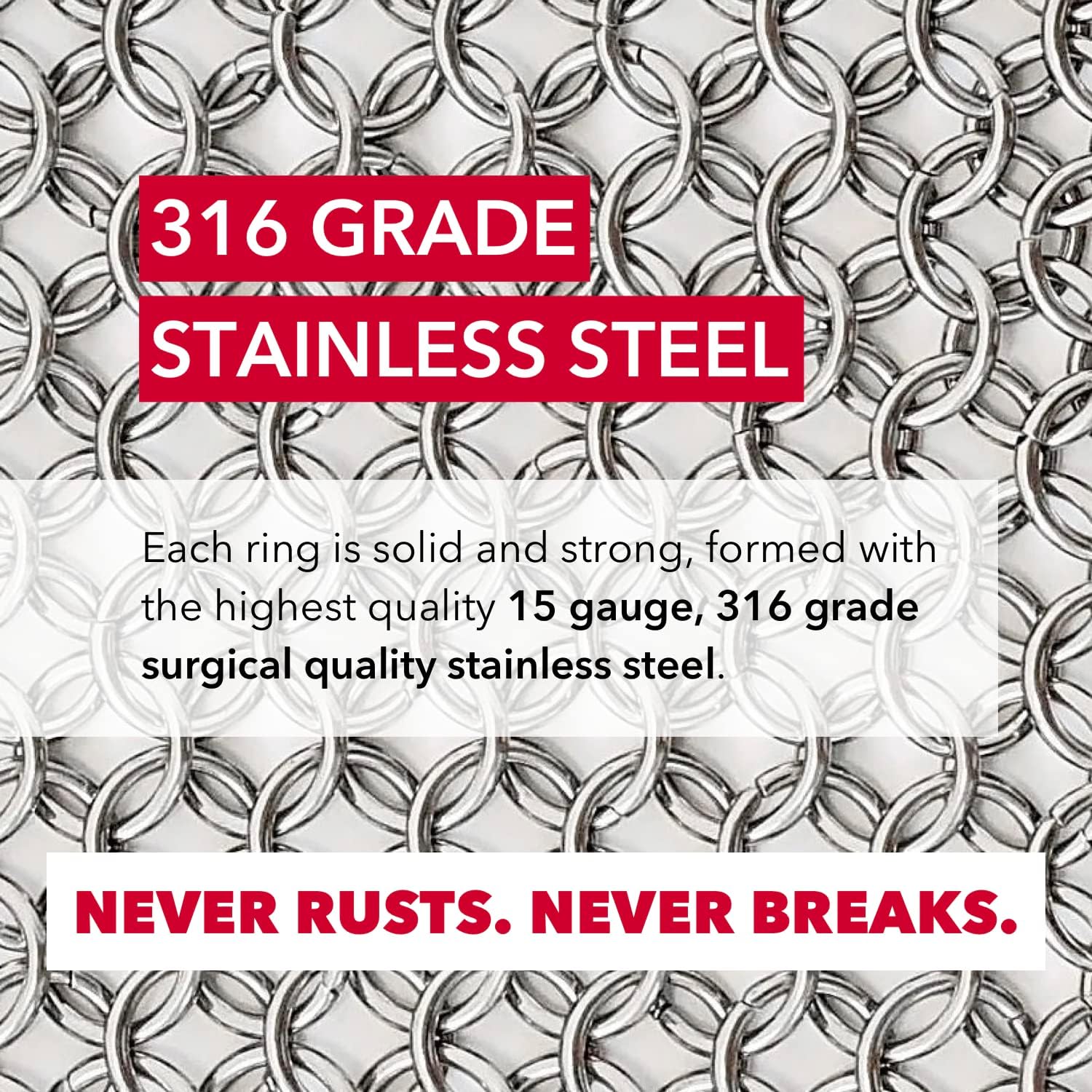 • Makes cast iron cookware cleanup quick and easy. Hand made from the highest quality Stainless Steel - food service Grade 316. Preferred by professional and home chefs.