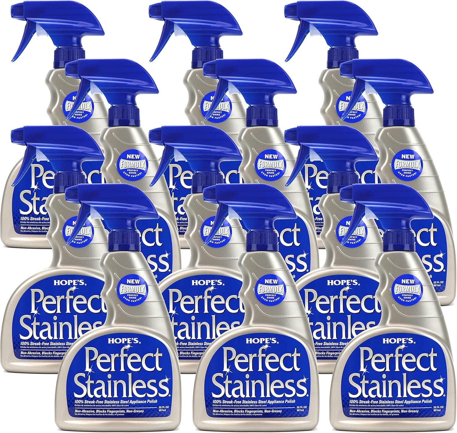 HOPE'S Perfect Stainless Steel Cleaner and Polish, 22-Ounce, Streak-Free Self-Polishing Formula, Blocks Fingerprints, Pack of 12