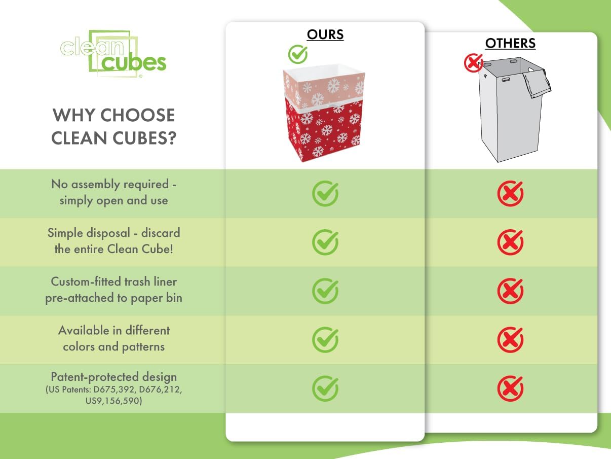 • ✅ 【EFFORTLESS CLEANUP & DISPOSAL】Simply unfold, use, and toss — keep your event clean and mess-free without extra effort. Clean Cubes are disposable recycling bins and trash cans with a patent-protected design and custom-fitted trash liner in each bin.
