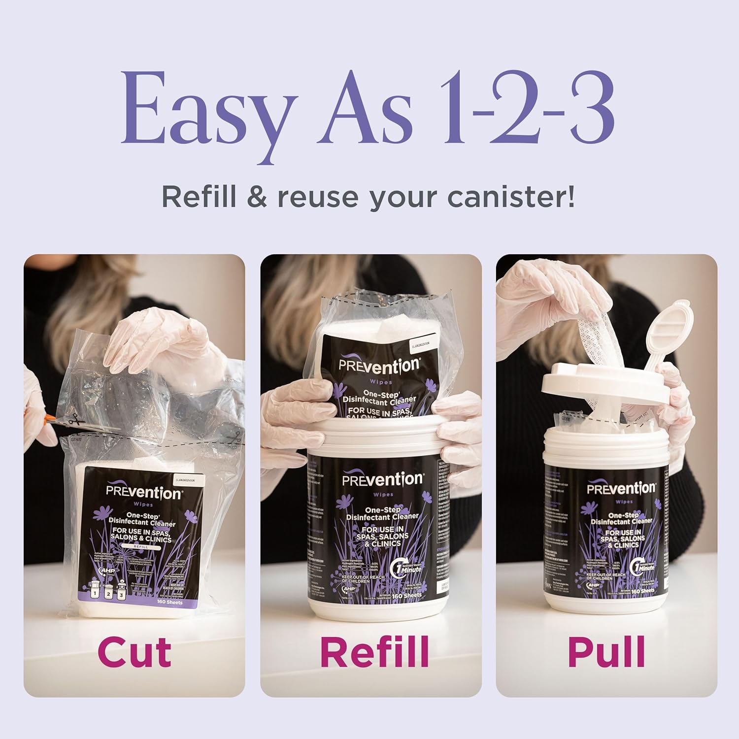 • Disinfectant Wipes Bulk – Convenient and eco-friendly, Prevention Disinfectant Refill Wipes reduce plastic waste by 90%, when compared to regular canisters. Simply reuse your existing canister and refill with the disinfectant wipes you trust. The compact size of refill wipes takes up less room in your spa or salon making them also cost effective.