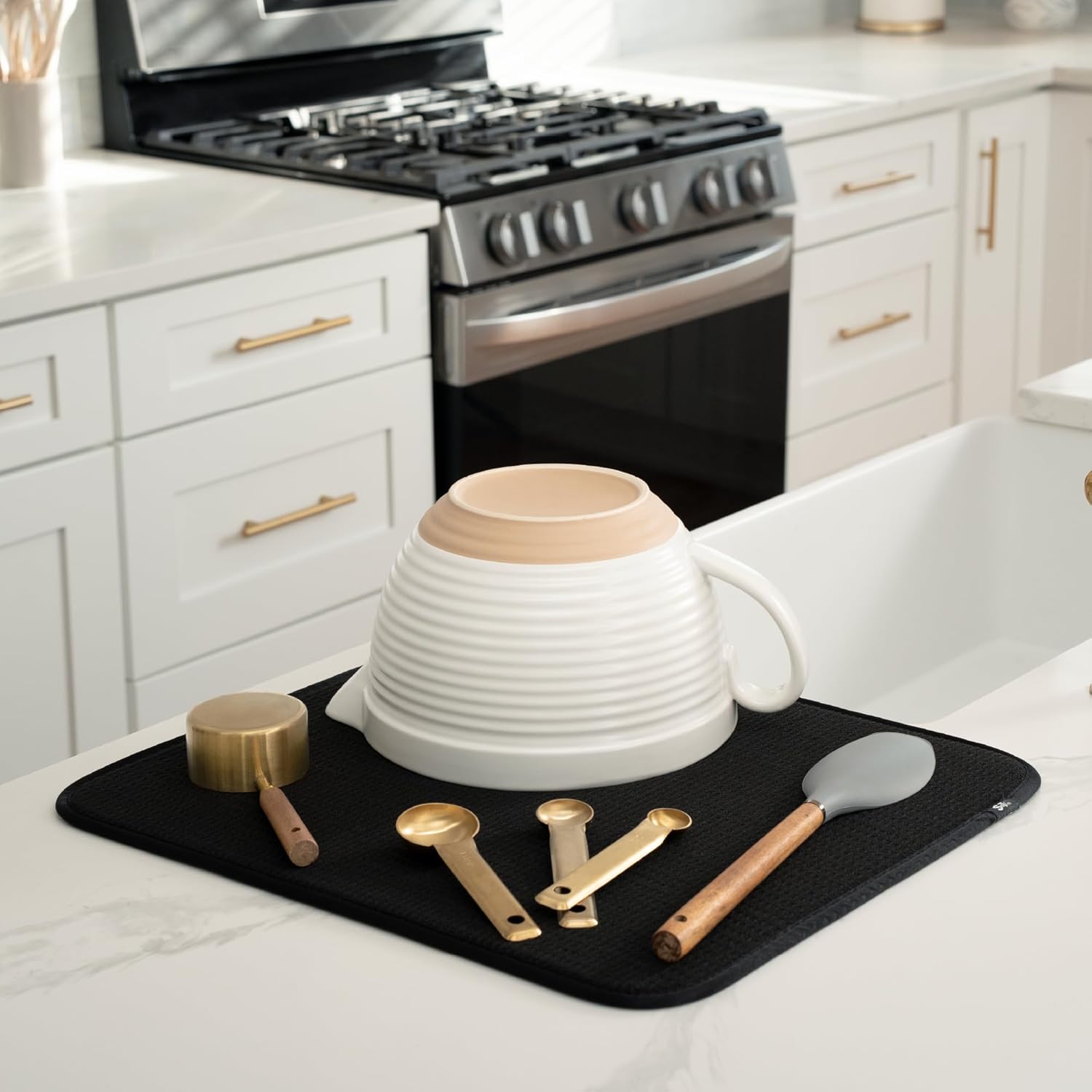 • Dish drying mats for kitchen counter are reusable, machine washable, and easy to store for kitchen organization; durable construction will not chip or break like a stone dish drying mat for kitchen