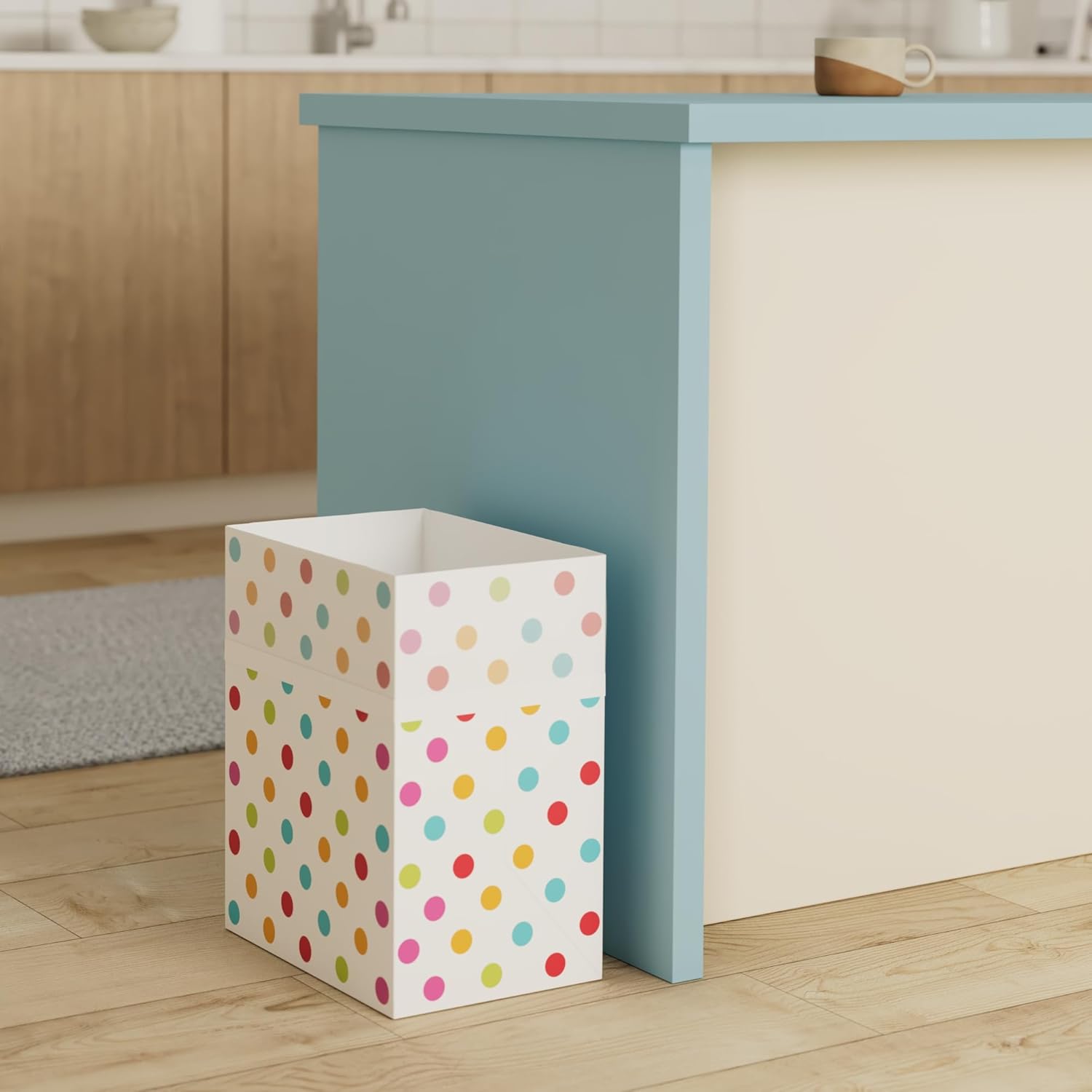 13 Gallon Disposable Pop-Up Trash Cans (3-Pack) with Fitted Bags – Foldable Garbage & Recycling Bins for Parties, Events & Kitchen (Polka Dot, 17" H x 13.5" W x 10" D)
