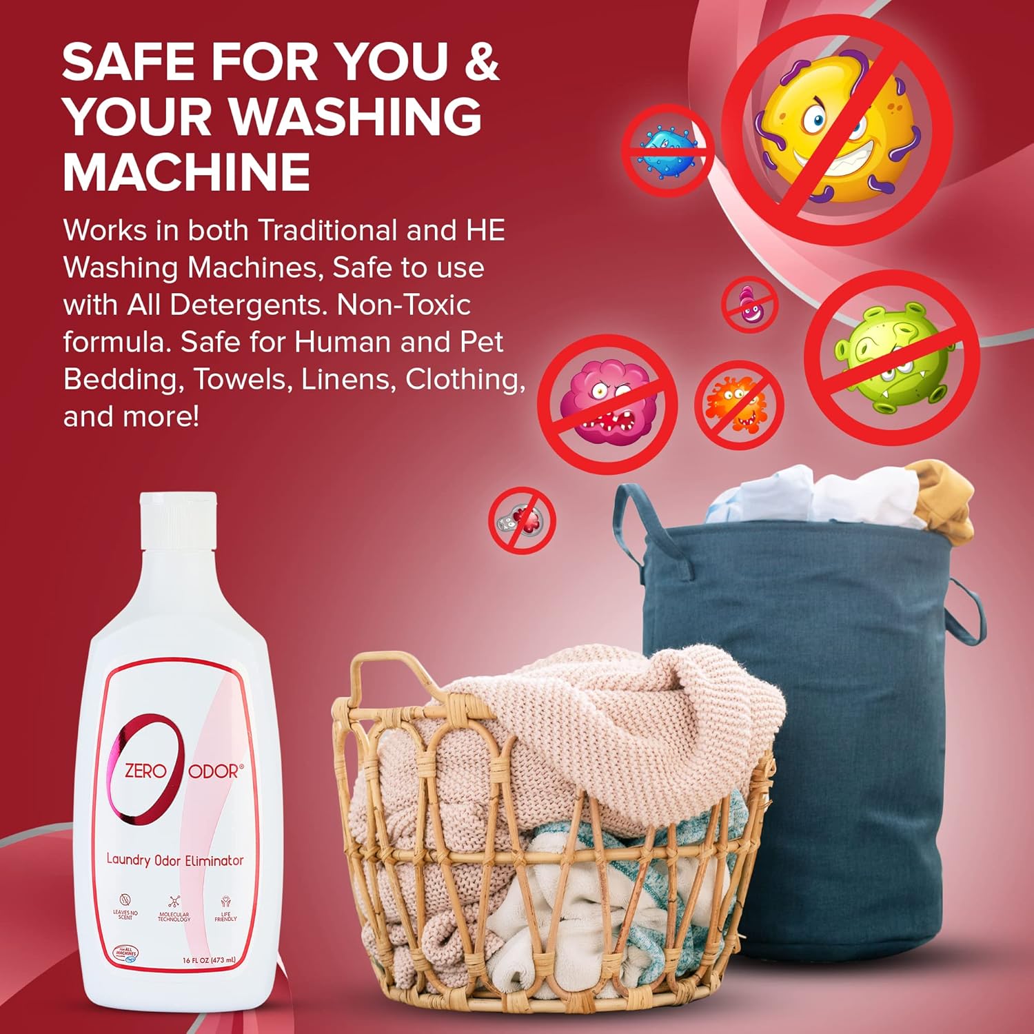 Zero Odor – Laundry Odor Eliminator - Permanently Eliminate laundry Odor – Patented Molecular Technology Best For Clothes, Towels & Linens, Shoes, Bags, Etc. - rinse and refresh Again, 16oz