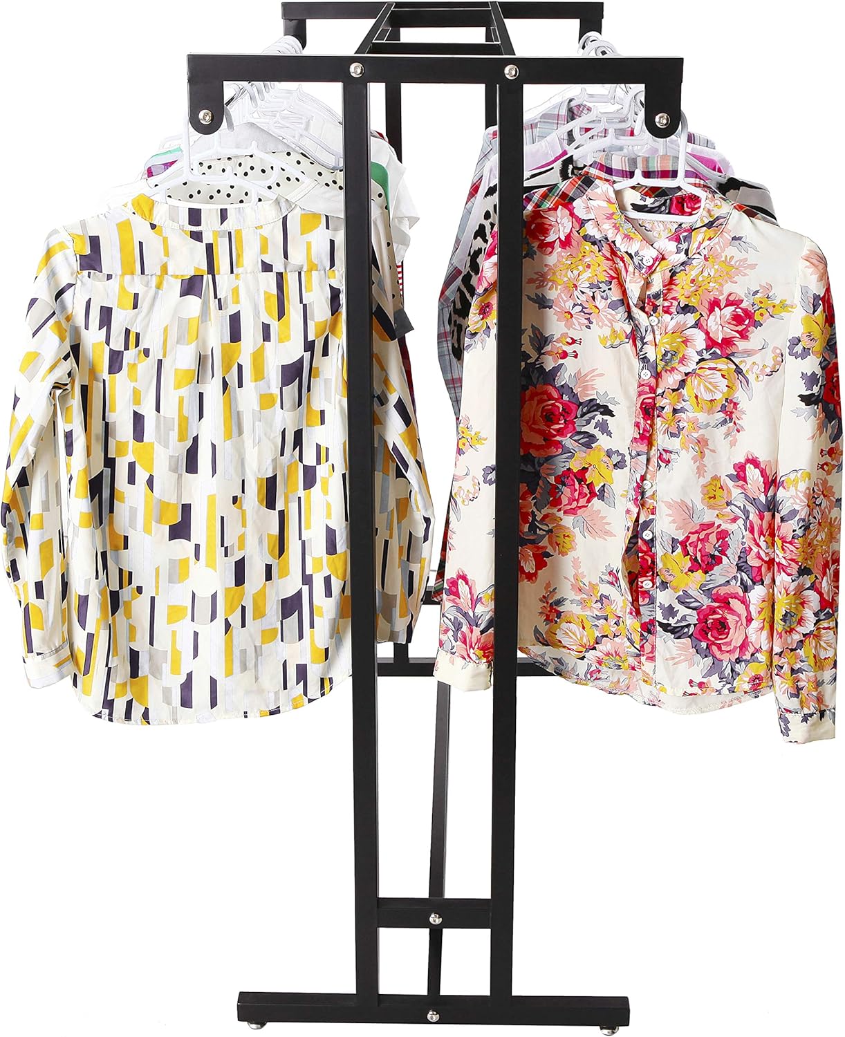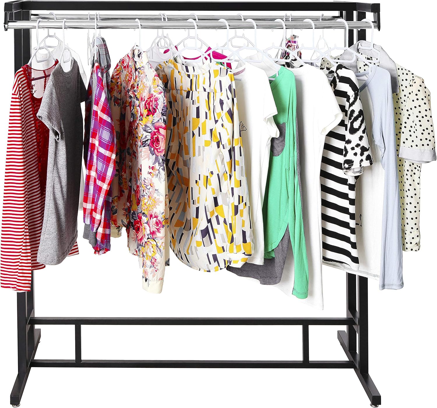 MyGift Black Stainless Steel Freestanding Garment Rack, Heavy Duty Double Rod Clothes Rack Clothing Hanger Stand with Storage Display Shelf
