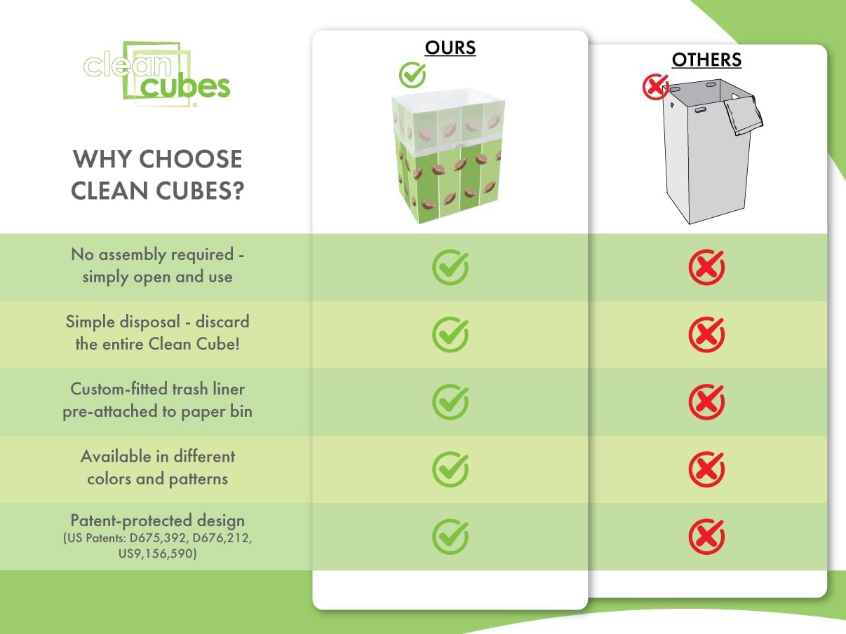 • ✅ 【EFFORTLESS CLEANUP & DISPOSAL】Simply unfold, use, and toss — keep your event clean and mess-free without extra effort. Clean Cubes are disposable recycling bins and trash cans with a patent-protected design and custom-fitted trash liner in each bin.