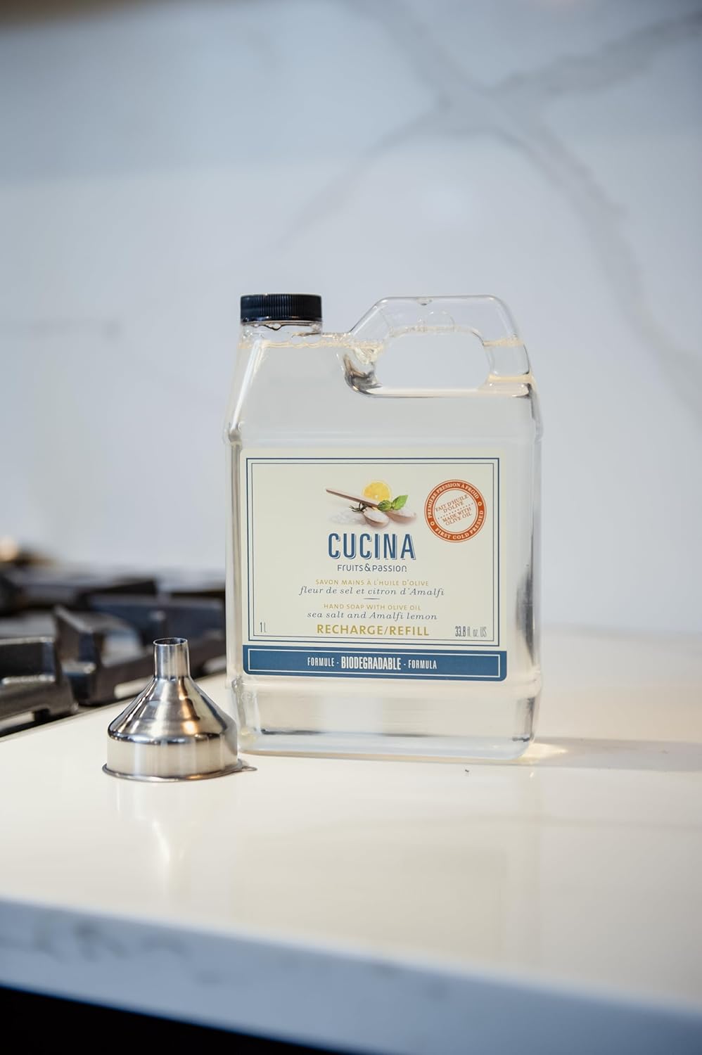 Cucina Fruits & Passion Hand Soap Refill – 1 Liter (33.8 oz) Sea Salt and Amalfi Lemon – Purifying All Natural Kitchen Hand Soap with Olive Oil – Vegan and Moisturizing Formula