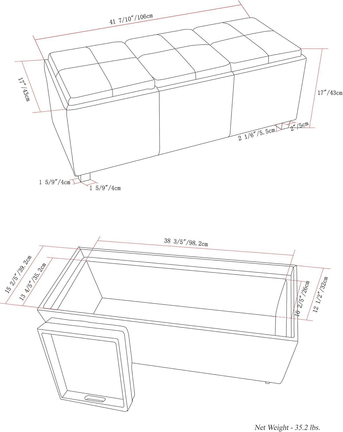 • Product Dimensions : 17"D x 41.7"W x 17"H