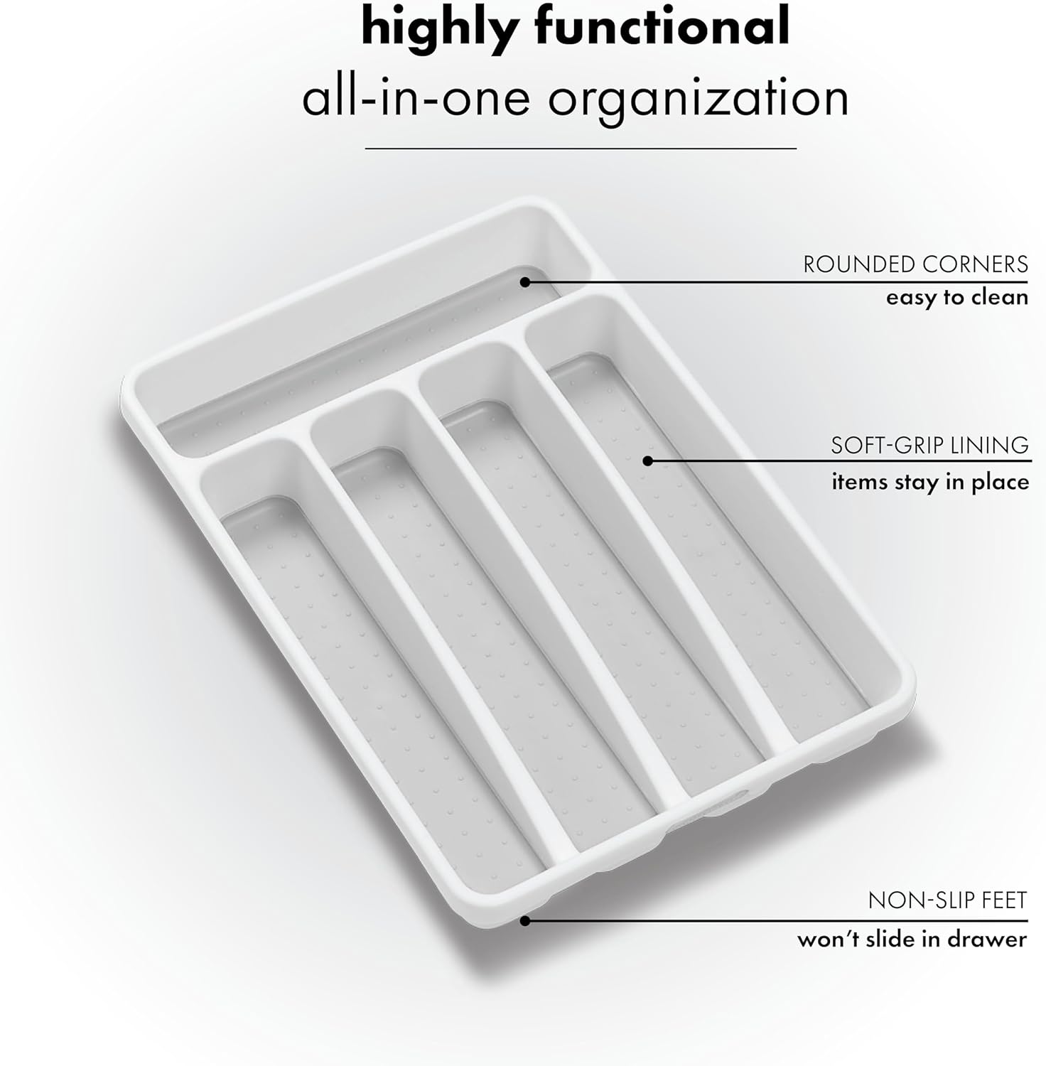 • BRANDED COMPARTMENTS: Designed with 5 spacious compartments and branded icons that make it easy to organize your various kitchen cutlery and utensils by size and type