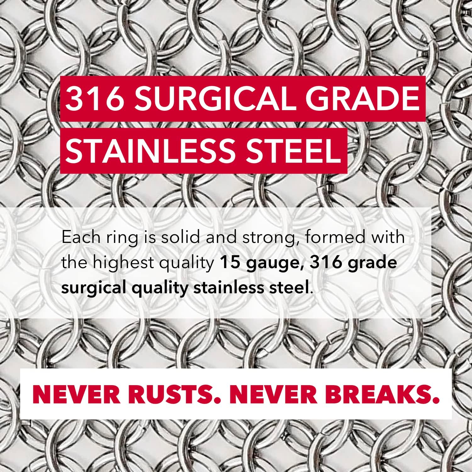 • EXTREME PRECISION AND CONTROL WITH 316 GRADE STAINLESS STEEL RINGS. With a larger surface area and smaller rings, you can confidently get into small grooves and corners with our chainmail scrubber for cast iron pans