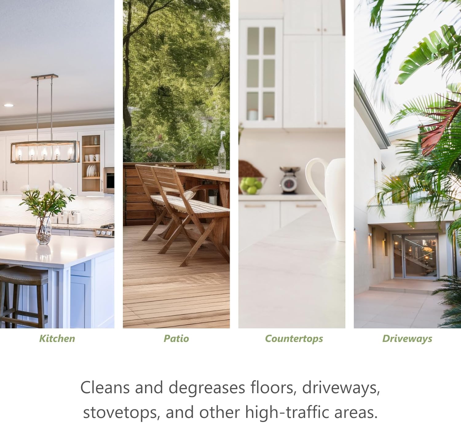 • Safe for natural stone, ceramic and porcelain as it removes grease, oil and ground in dirt from floors and counters.