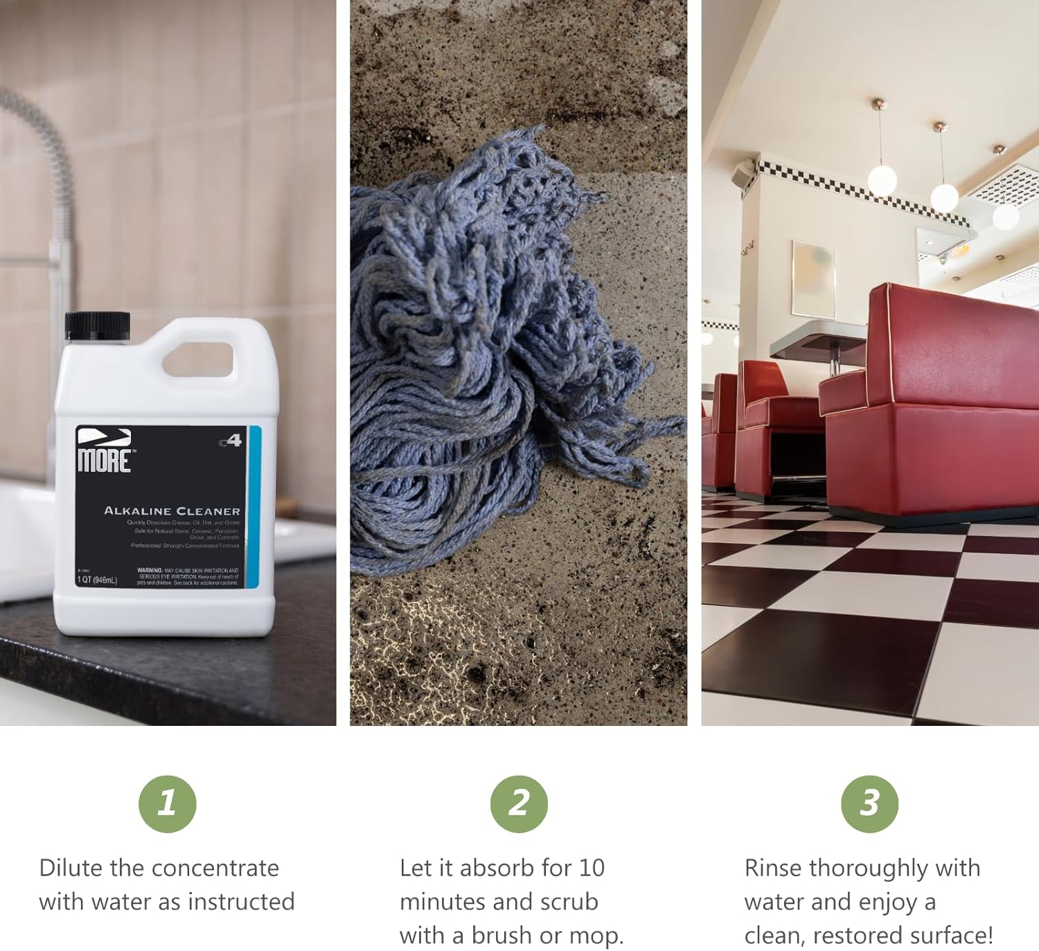 MORE Alkaline Heavy Duty Cleaner & Degreaser for Cleaning, Oil Removing and Restoring Natural Stone, Tile, Grout, Concrete, Kitchen Appliances, Stovetops and Grills - Quart - 32 oz