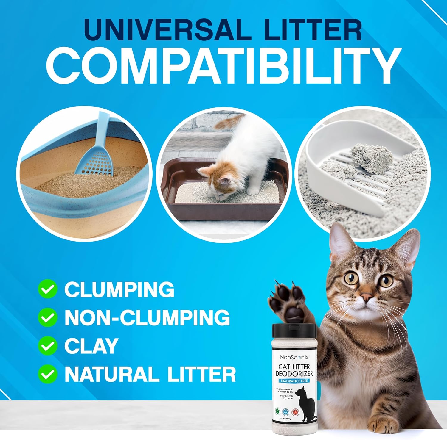 - VERSATILE USE: Our deodorizer isn't limited to just litter boxes. Sprinkle a small layer over your cat litter for an odor-free environment, but don't stop there. Extend the benefits to other areas of your home, such as trash compactors, garbage cans, kennels, and animal carriers. Enjoy a consistently fresh atmosphere wherever your cat roams.