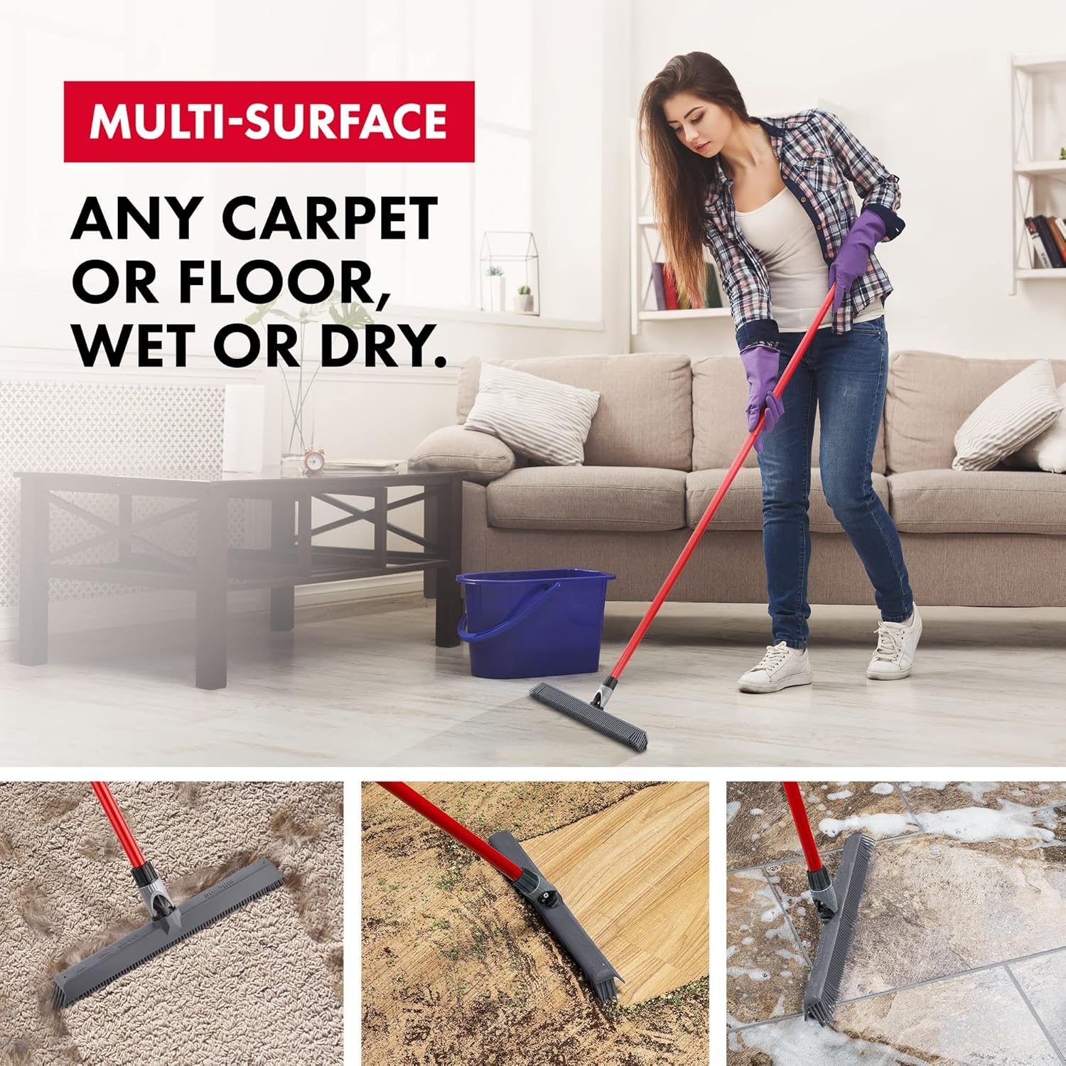 • DURABLE DESIGN AND CONSTRUCTION: Our Silicone Rubber Broom boasts an Aluminum Anti-Rust handle that ensures 100% rust resistance. It is constructed from a single-cast piece which helps retain its shape even under heavy use. The brush head is super easy to clean, always ready for any cleaning challenge that comes its way!