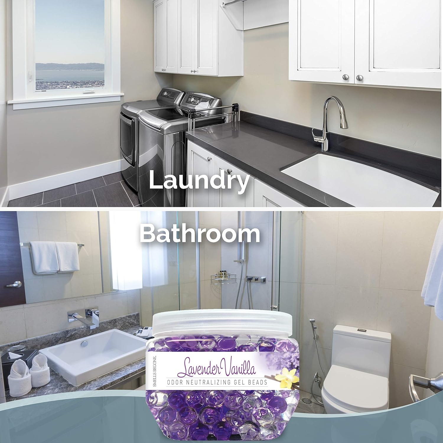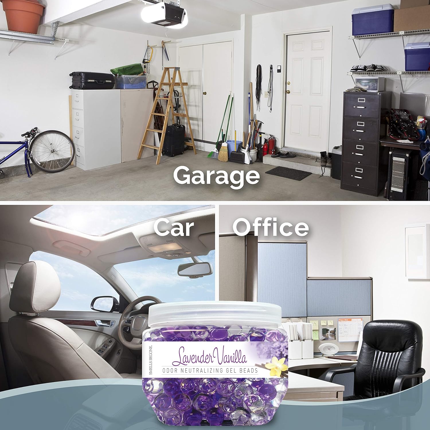 SMELLS BEGONE Odor Eliminator Gel Beads - 12 oz, Pack of 2 - Eliminates Odor in Bathrooms, Cars, Boats, RVs & Pet Areas - Air Freshener - Made with Essential Oils - Lavender Vanilla Scent