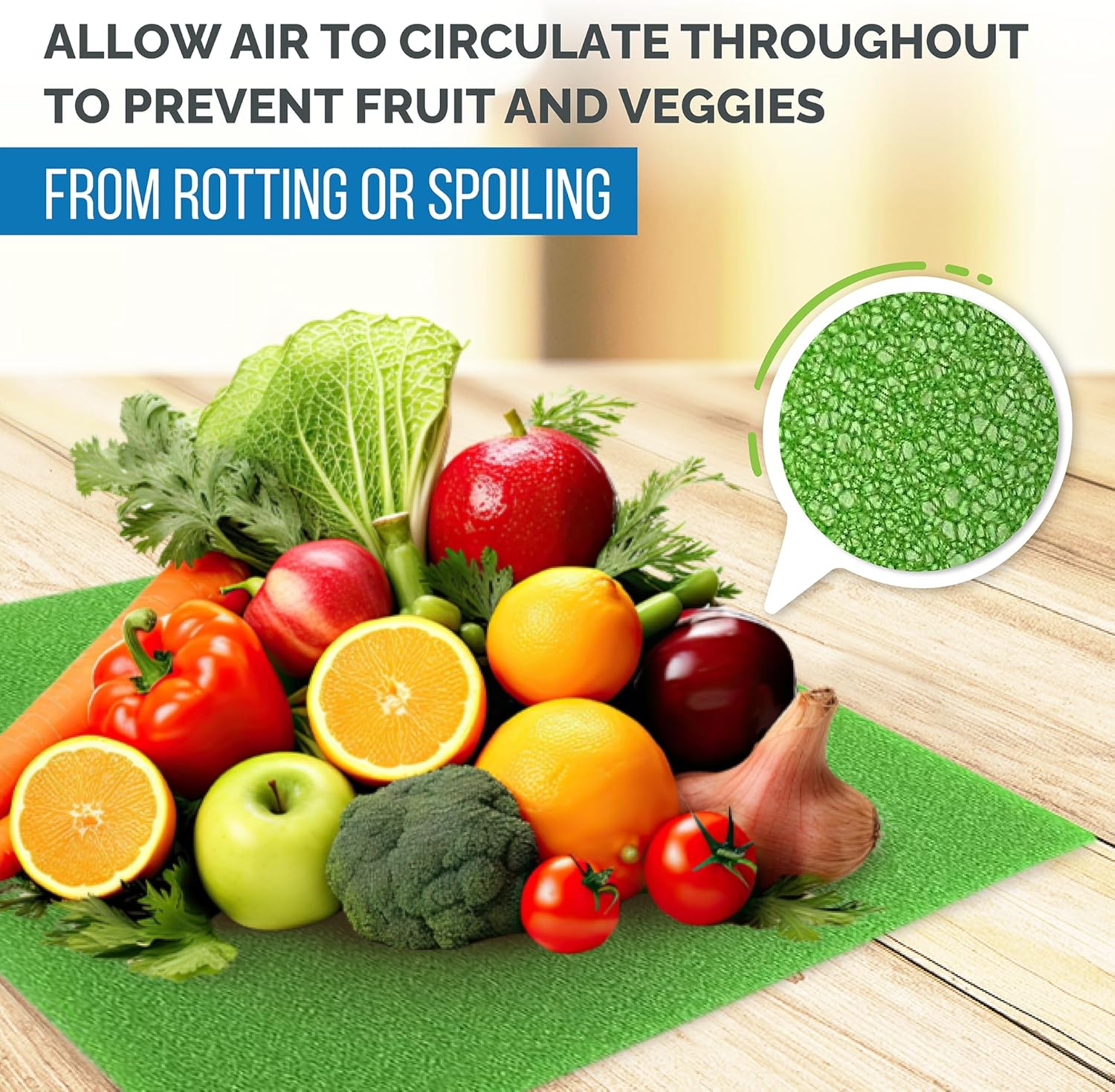 • These innovative foam fridge liners allow air to circulate throughout the drawer to prevent your fruit and veggies from rotting or spoiling.These innovative foam fridge liners allow air to circulate throughout the drawer to prevent your fruit and veggies from rotting or spoiling.