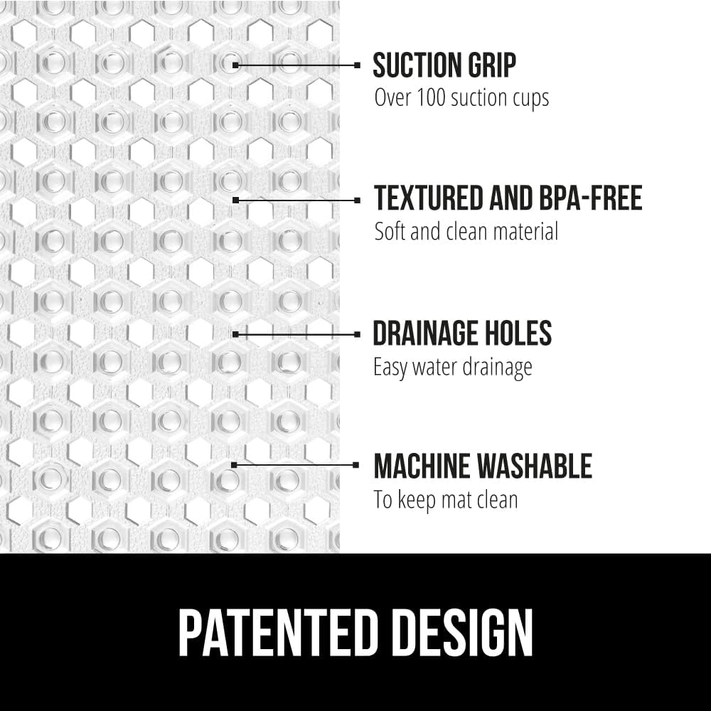• PATENTED DESIGN WITH POWERFUL SUCTION GRIP: a shower mat designed to securely stay in place; the patented mat features hundreds of suction cups that effectively help secure the mat to your tub or shower floor