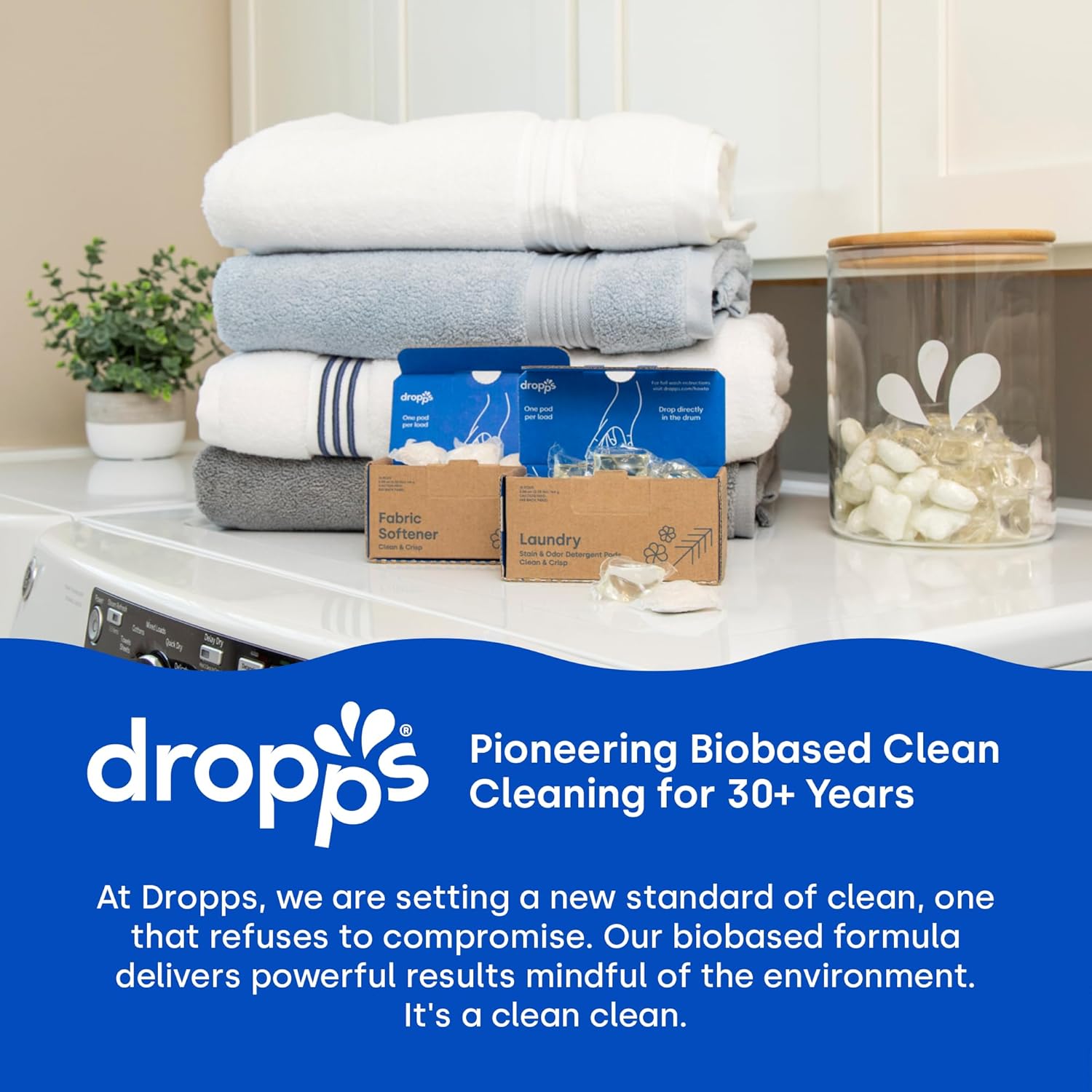 • ABOUT DROPPS: For over 30 years, Dropps has pioneered a cleaner clean – without compromise. As a B -Corp and trusted leader in household cleaning, Dropps delivers cutting-edge cleaning power in revolutionary liquid laundry and powder dish pods. Manufactured in North America. Leaping Bunny approved.