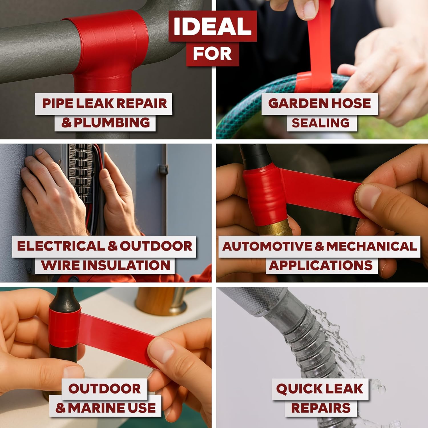 • Self-fusing Silicone Tape that does not melt up to 260°C (500°F) making it ideal for emergency repairs for automotive, plumbing, marine, hose, electrical, indoor and outdoor applications.