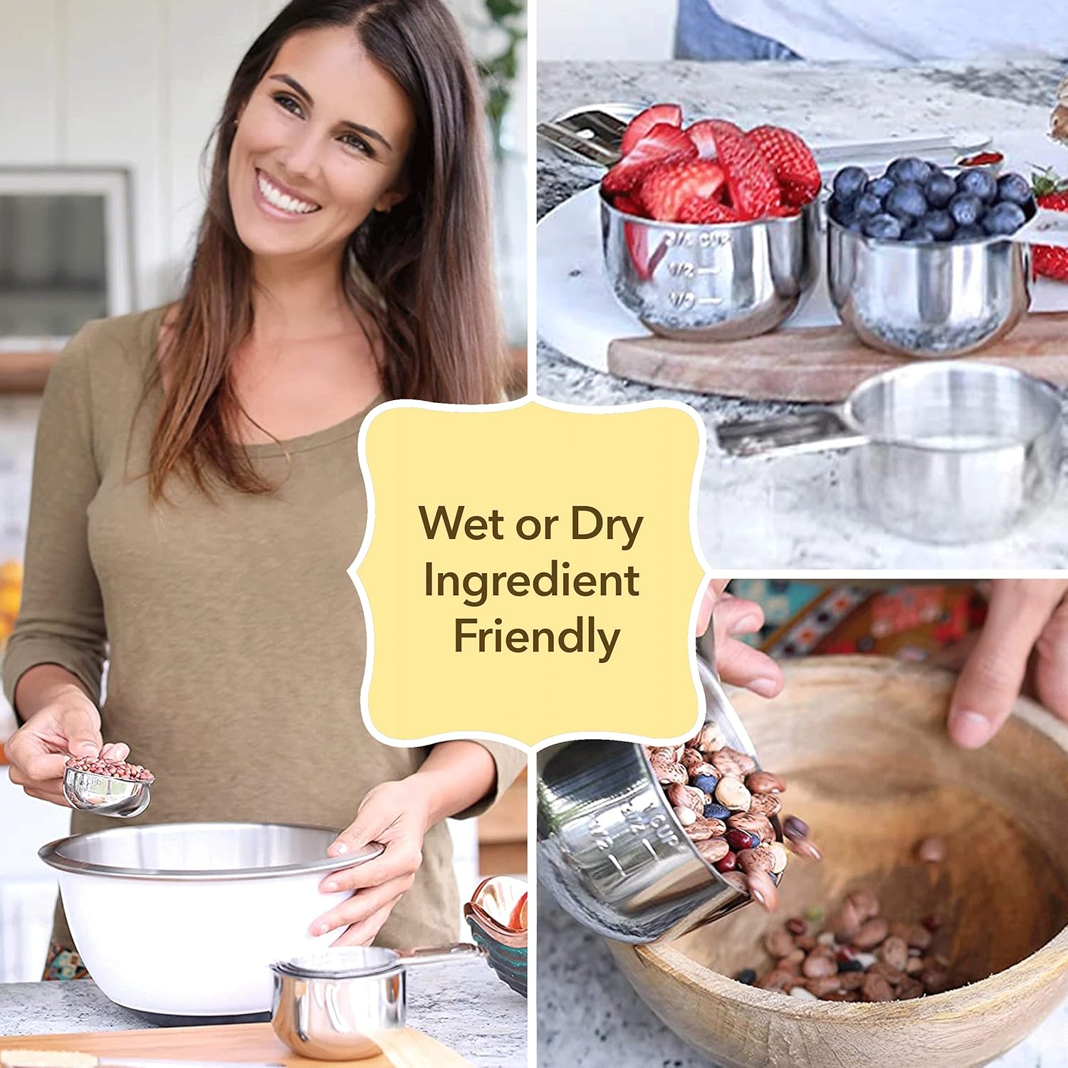 • Built To Last: Designed with top-quality stainless steel, these metal measuring cups are dishwasher safe and will help you cook or bake for years to come.