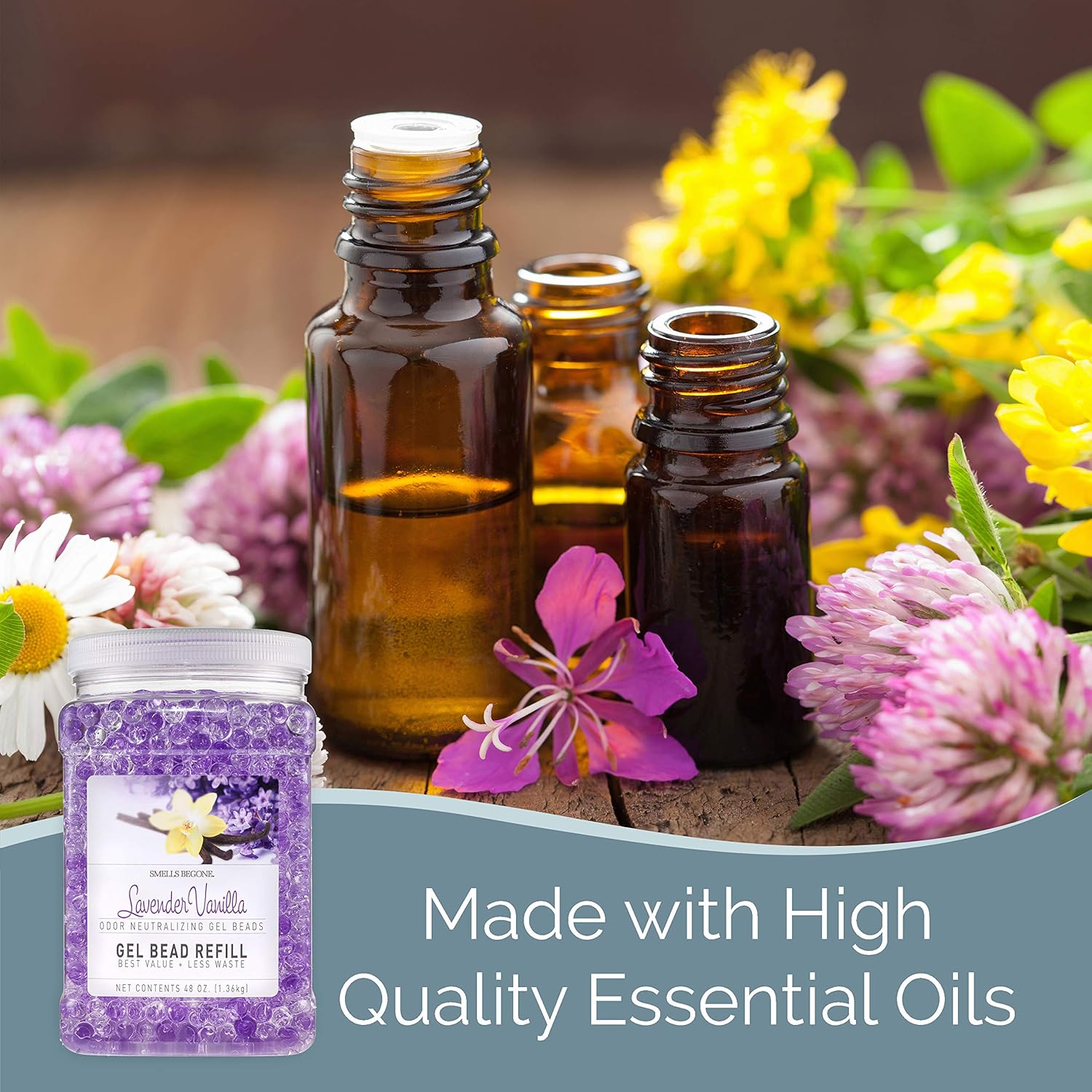 SMELLS BEGONE 48 oz Odor Eliminator Gel Bead Refill - Eliminates Odor from Bathrooms, Boats, Cars, RVs & Pet Areas - Made with Essential Oils - Lavender Vanilla Scent