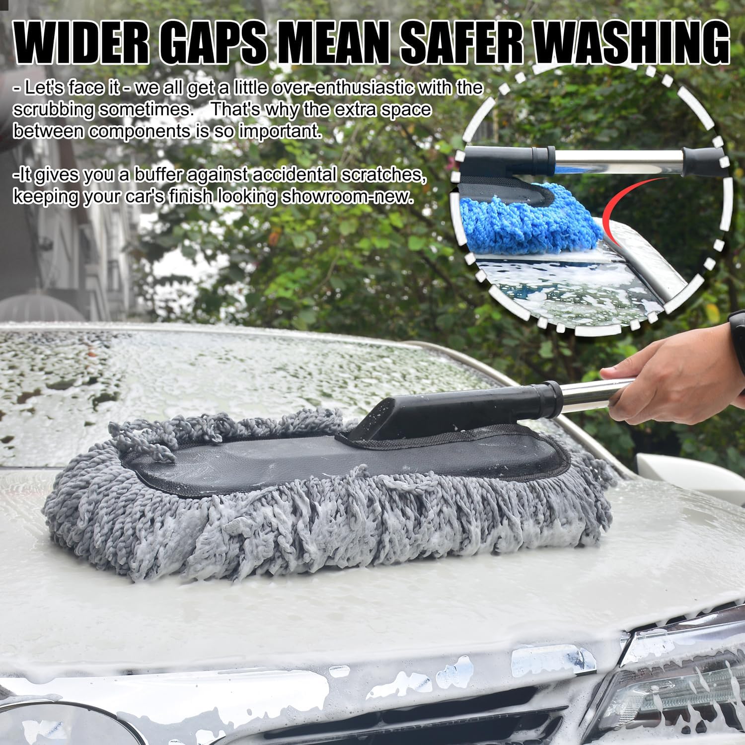 • 4. User-Friendly & Durable Design Built to last with a reusable and machine-washable design. The lightweight, extendable stainless steel handle is anti-slip and comfortable to use, providing a secure grip while protecting your car's finish from scratches.