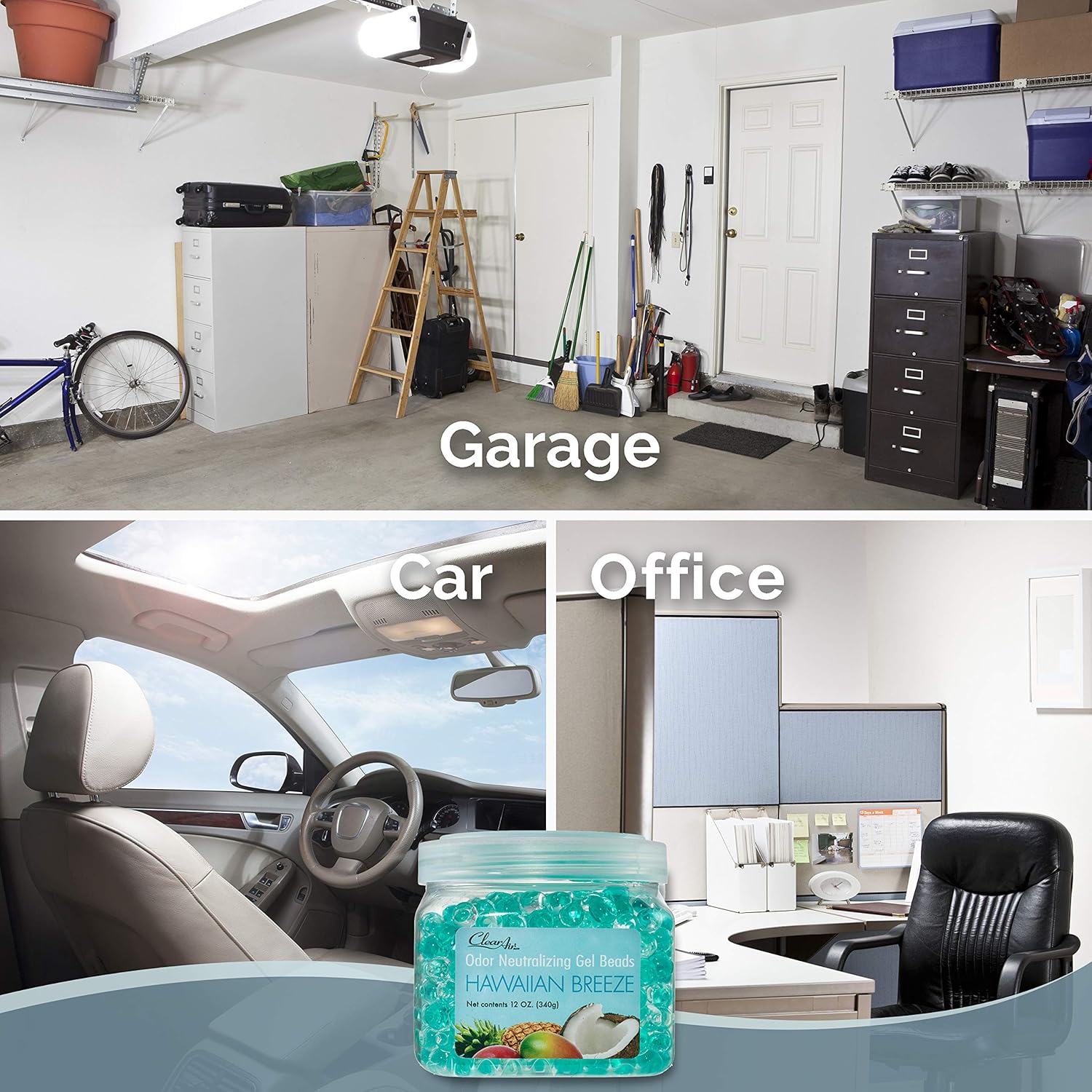 Clear Air Odor Eliminator Gel Beads - 12 oz, Pack of 2 - Air Freshener Made with Essential Oils - Eliminates Odors in Bathrooms, Cars, Boats, RVs & Pet Areas - Hawaiian Breeze Scent