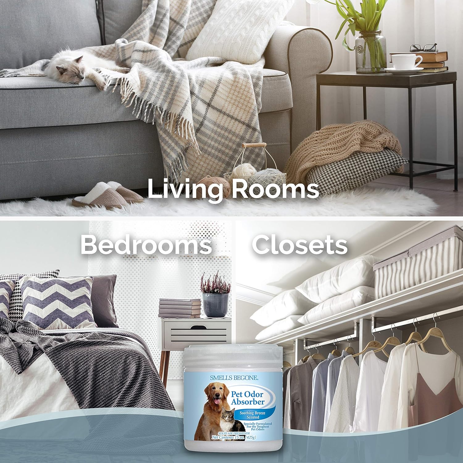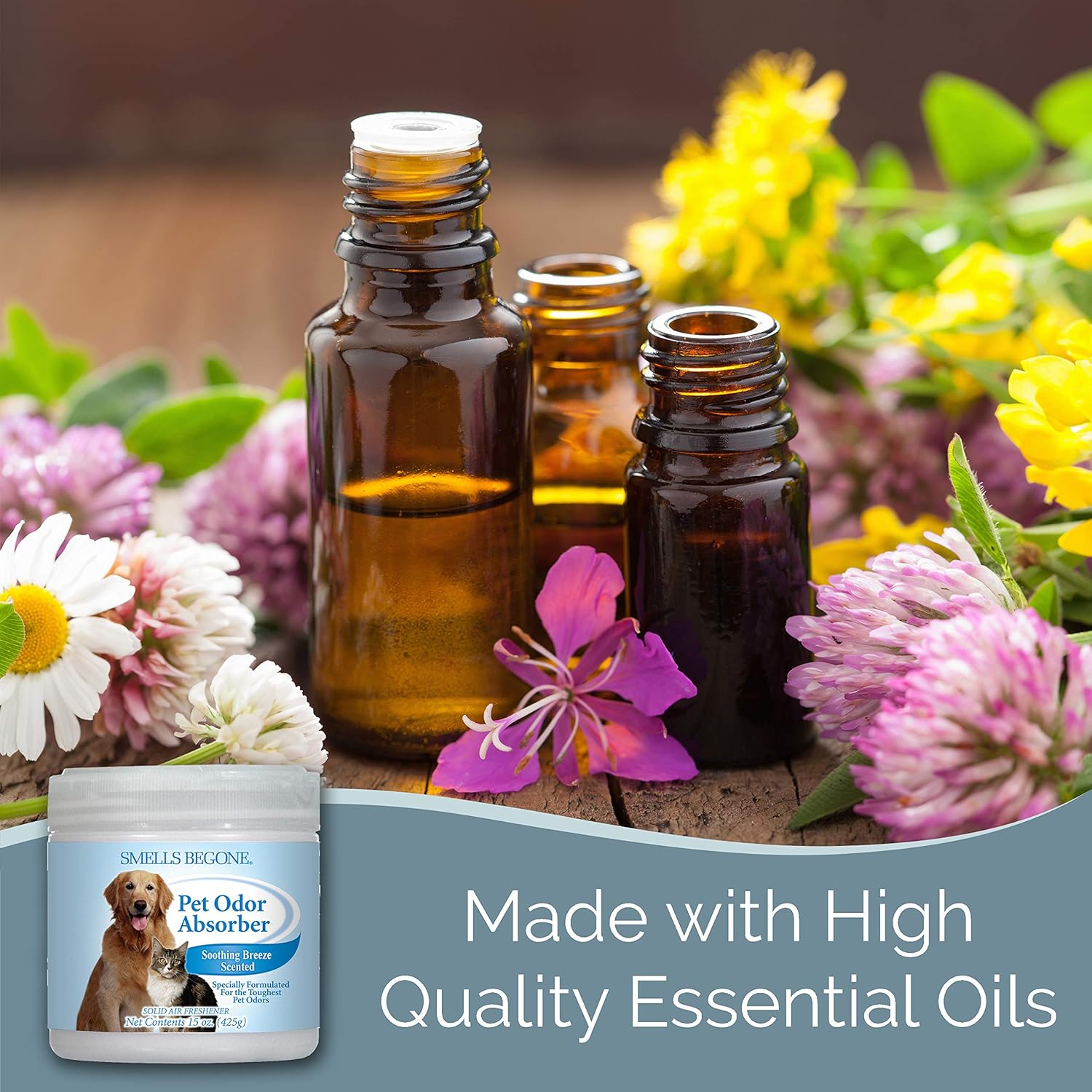 SMELLS BEGONE Air Freshener Pet Odor Absorber Gel - 15 oz, Pack of 2 - Absorbs and Eliminates Odor in Pet Areas, Bathrooms, Cars, & Boats - Made with Essential Oils - Soothing Breeze Scent
