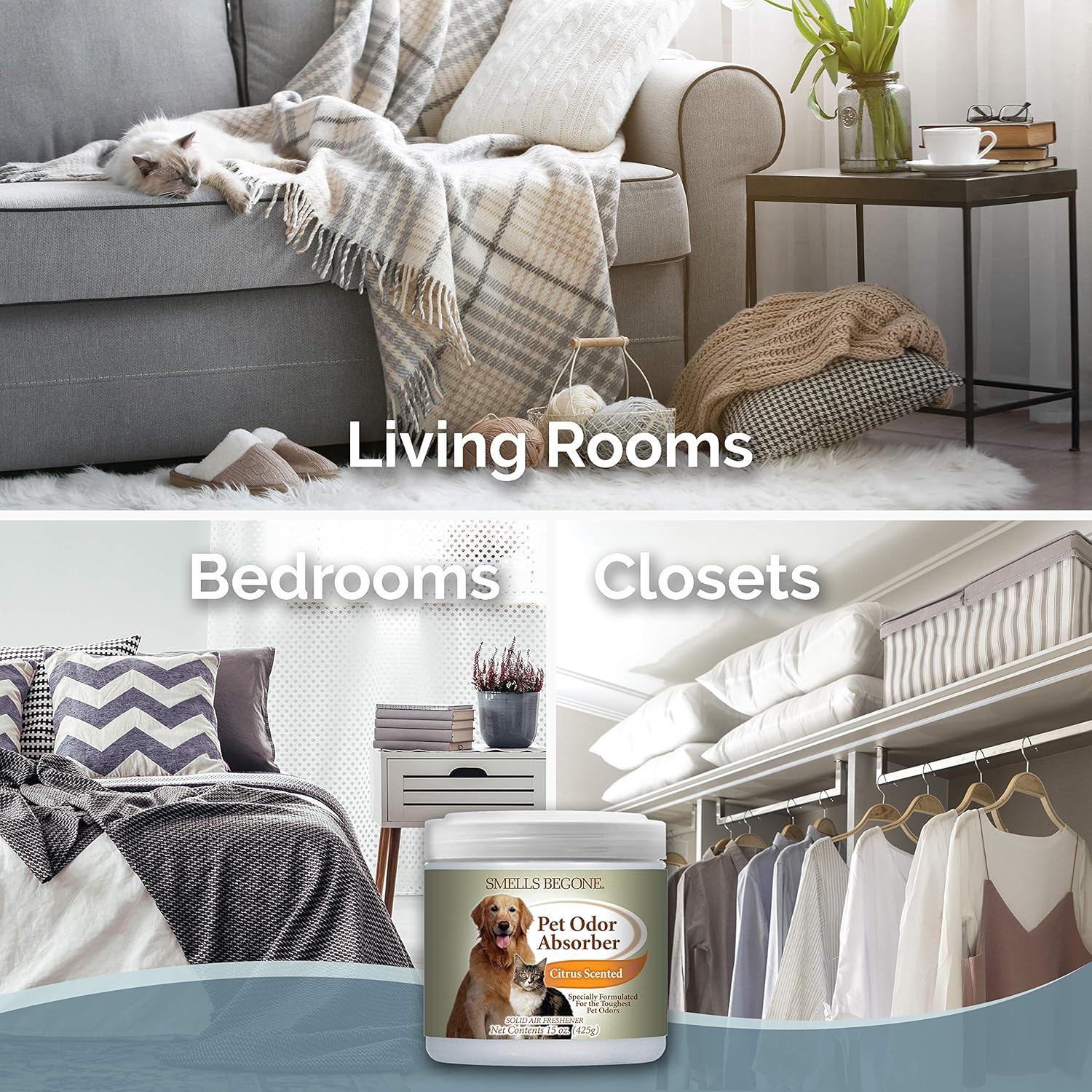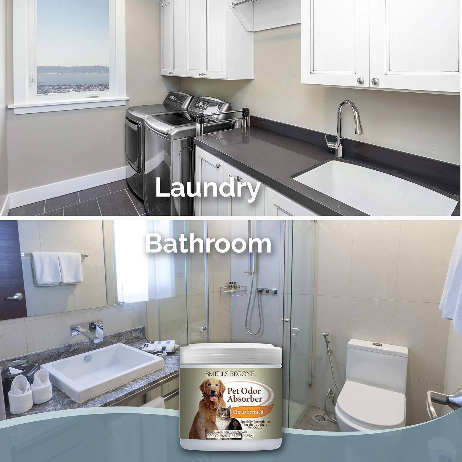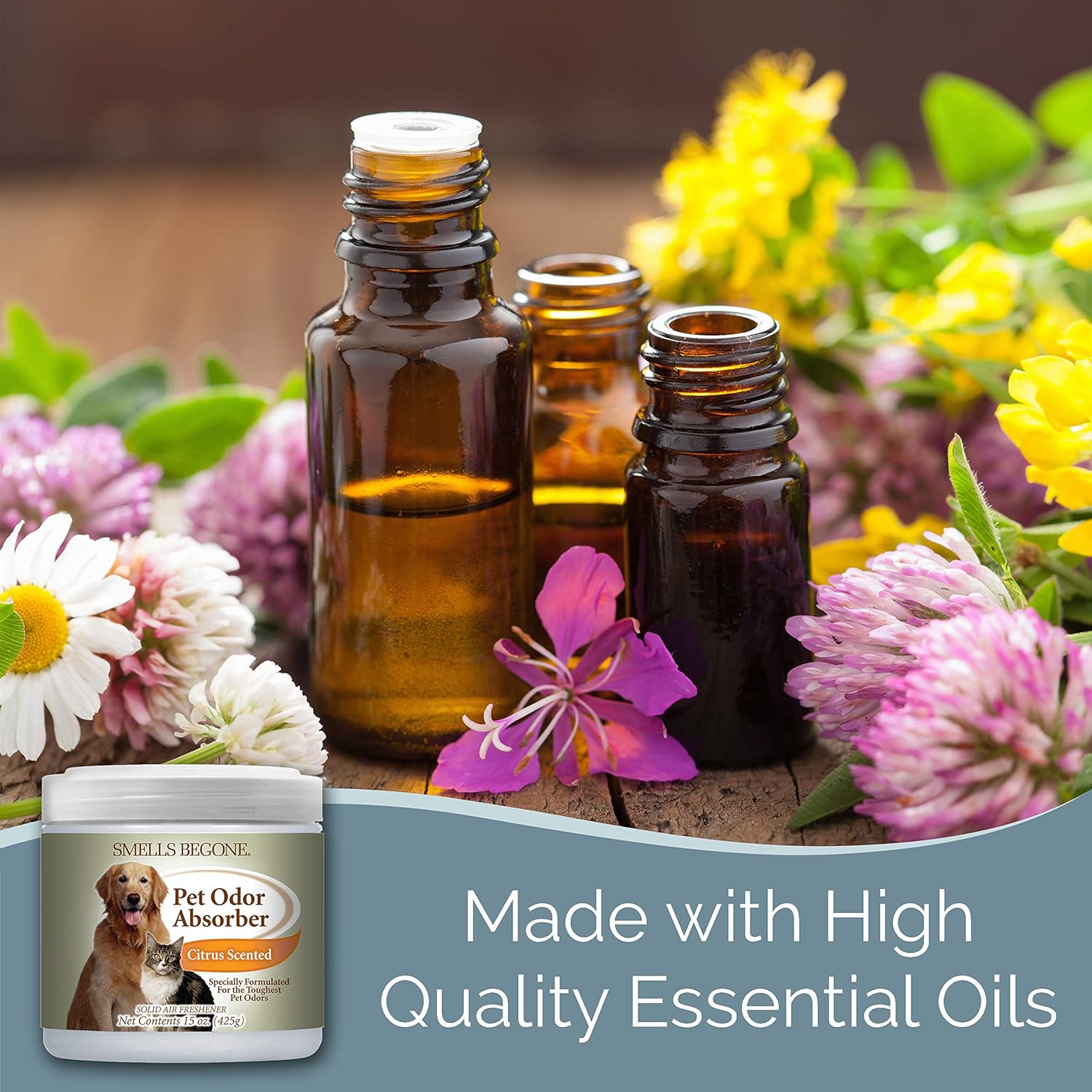 SMELLS BEGONE Air Freshener Pet Odor Absorber Gel - 15 oz, Pack of 2 - Absorbs and Eliminates Odor in Pet Areas, Bathrooms, Cars, & Boats - Made with Essential Oils - Citrus Scent