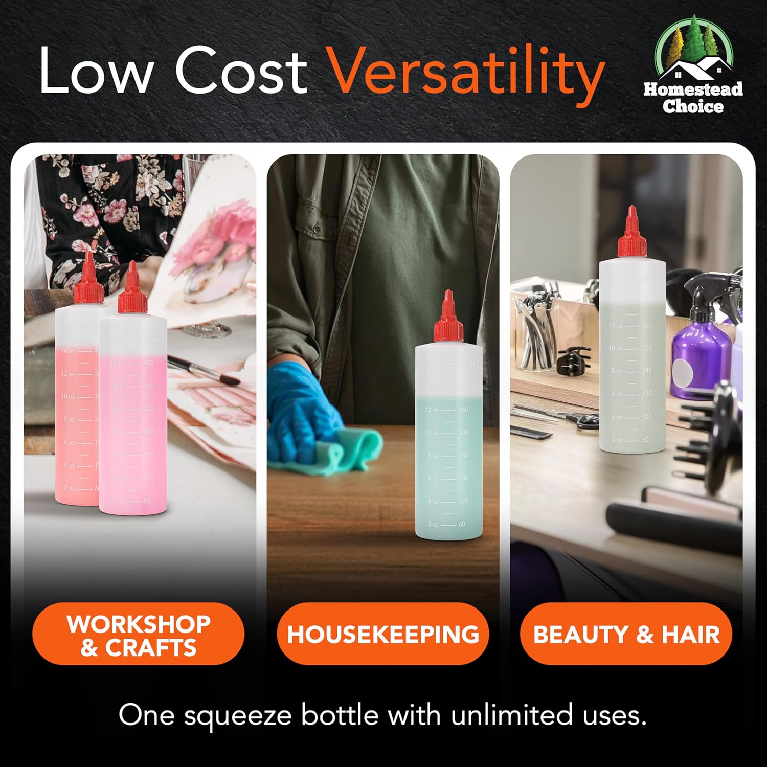 • Multi-Purpose and Easy to Usd- Whether you intend to use the bottles in the kitchen - oil, vinegar, icing, and other condiments; in the garage - lubricants, paint thinners and cleaning liquids; for arts and crafts - glue, paint, dye, and ink, or for whichever liquids you have in mind, these versatile squeeze bottles come in handy