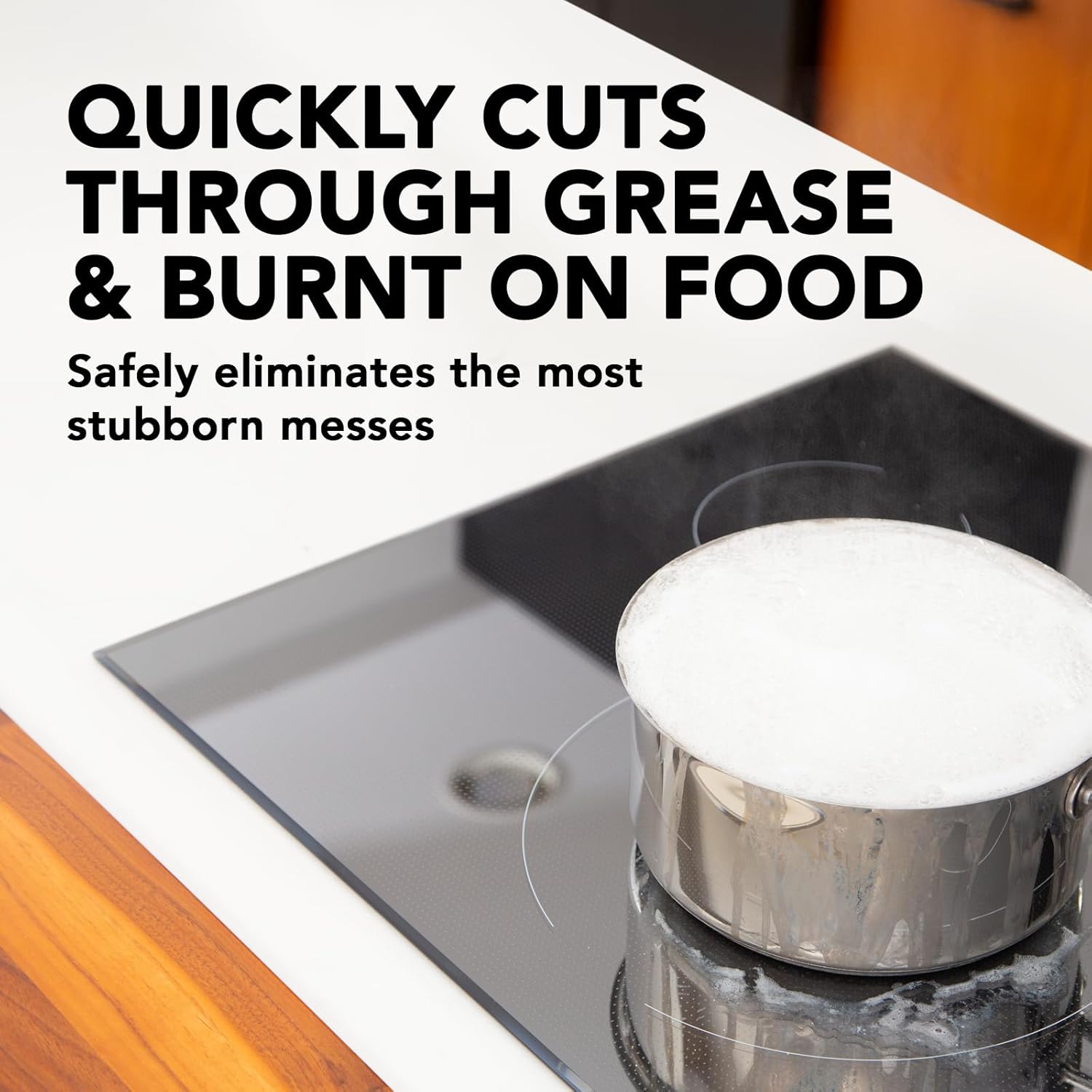 • SAFE & EASY TO USE: Leave a streak-free shine while removing splattered food, dirt, oily residue & watermarks. Will not scratch or damage your cooktop.