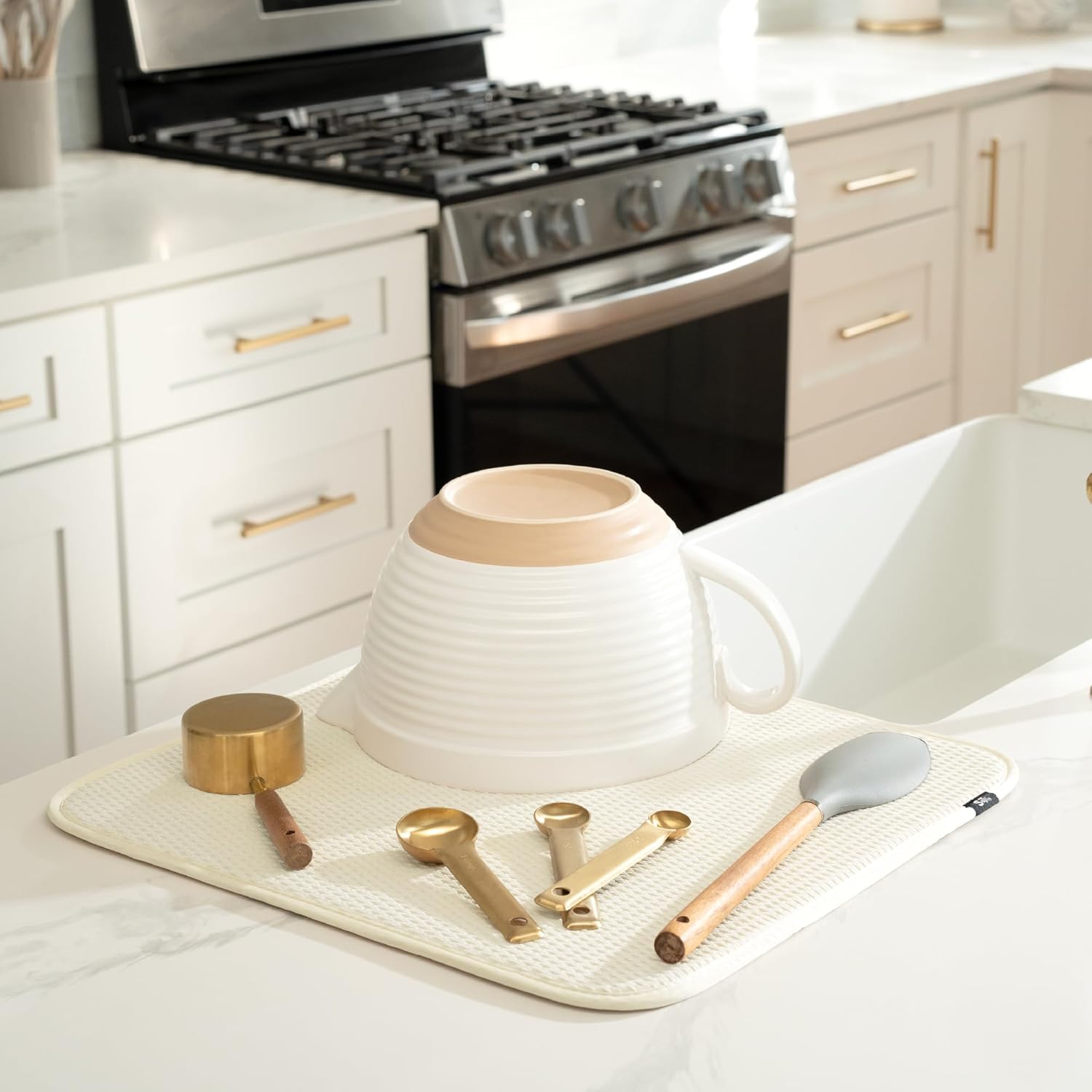 • Dish drying mats for kitchen counter are reusable, machine washable, and easy to store for kitchen organization; durable construction will not chip or break like a stone dish drying mat for kitchen