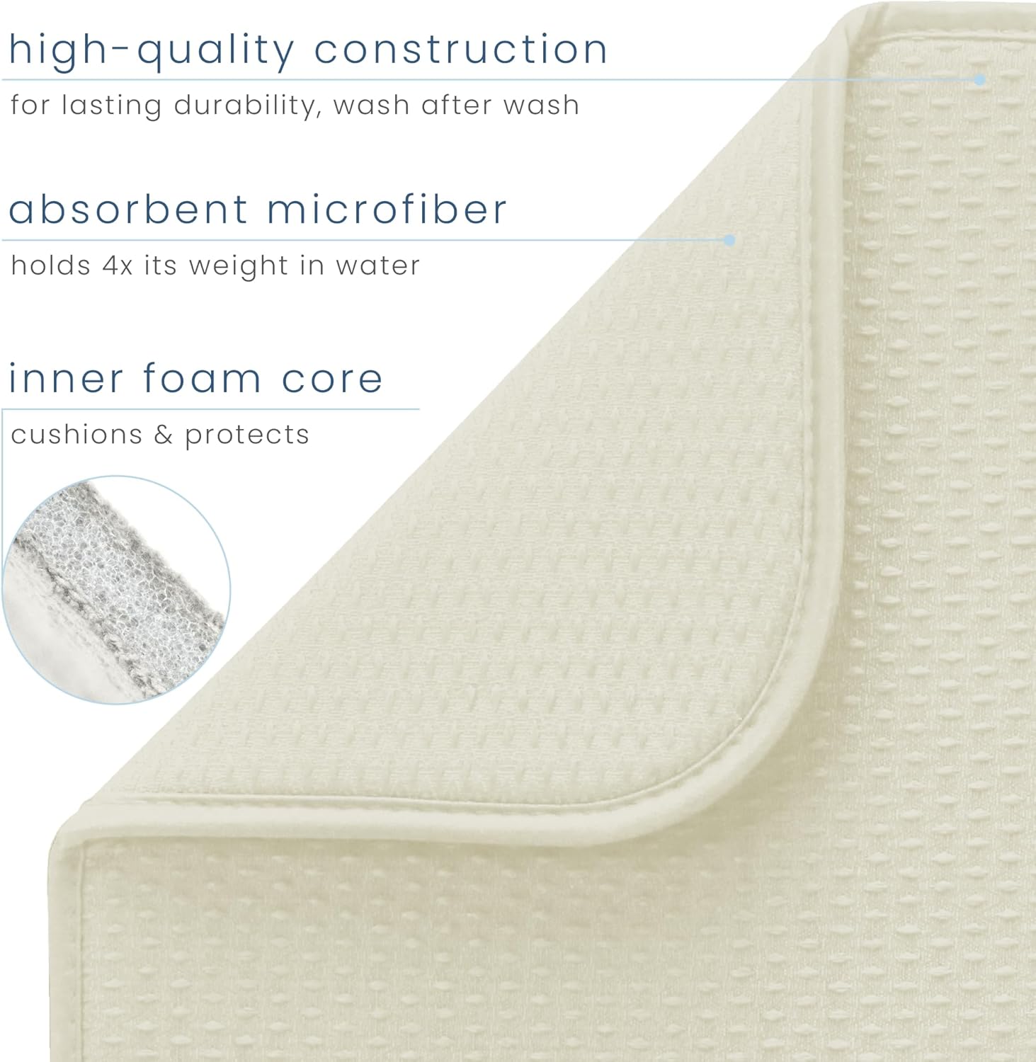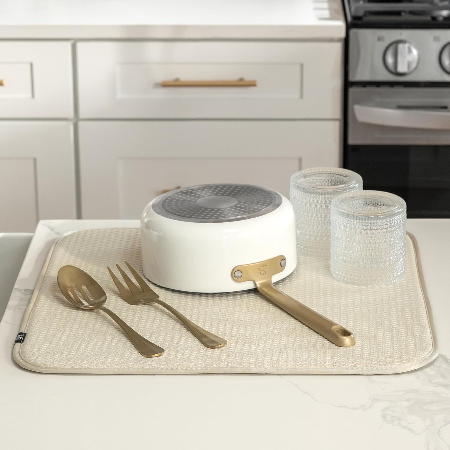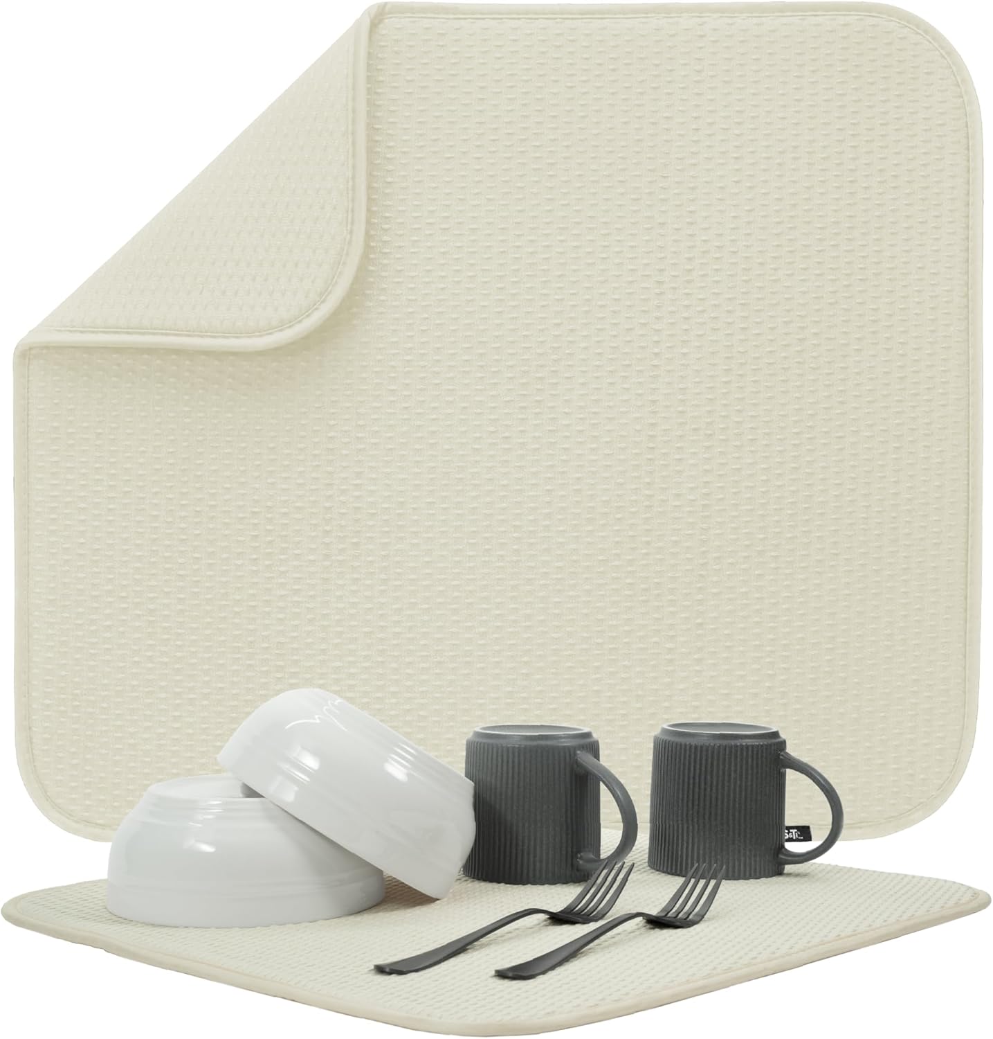 S&T INC. Dish Drying Mat, 16” x 18”, Absorbent Microfiber Kitchen Counter Mat, Drying Pad for Dishes, Utensils, Pots and Pans, Large, Diamond Texture, Cream