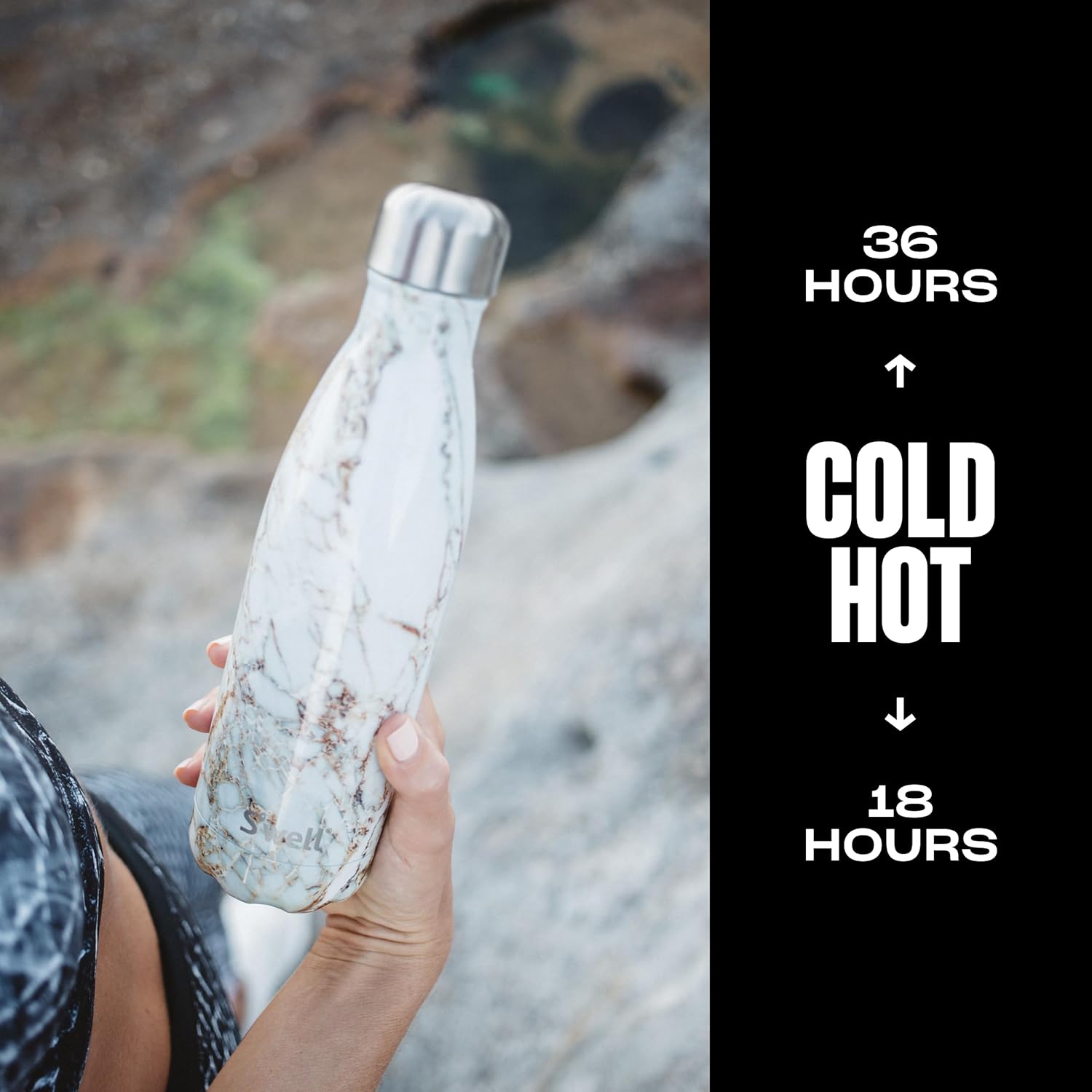 S'well Stainless Steel Water Bottle, 17oz, Calacatta Gold, Triple Layered Vacuum Insulated Containers Keeps Drinks Cold for 36 Hours and Hot for 18, BPA Free, Perfect for On the Go
