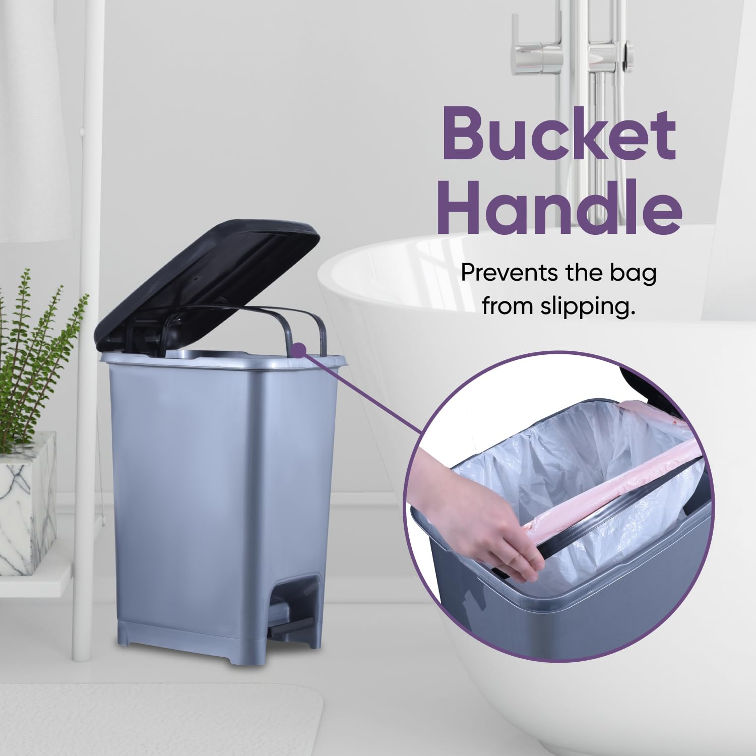 - NO MORE SMELLY TRASH CAN – This step-on trash can has a lid that effectively seals in odor and secures your bag to the can making removing your garbage easy and sanitary. This prevents you from cross-contaminating yourself or others which is especially important in your home or office as it keep bad odors locked away. With this said, it is perfect for dog waste trash can, bathroom trash can, and kitchen trash cans.