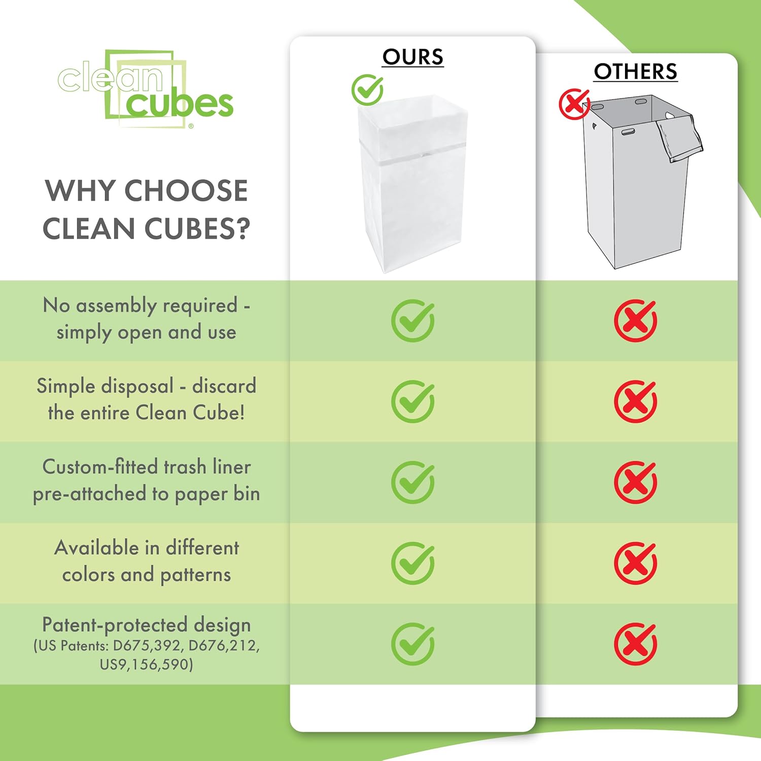 • ✅【EFFORTLESS CLEANUP & DISPOSAL】Simply unfold, use, and toss — keep your event clean and mess-free without extra effort. Clean Cubes are disposable recycling bins and trash cans with a patent-protected design and custom-fitted trash liner in each bin.