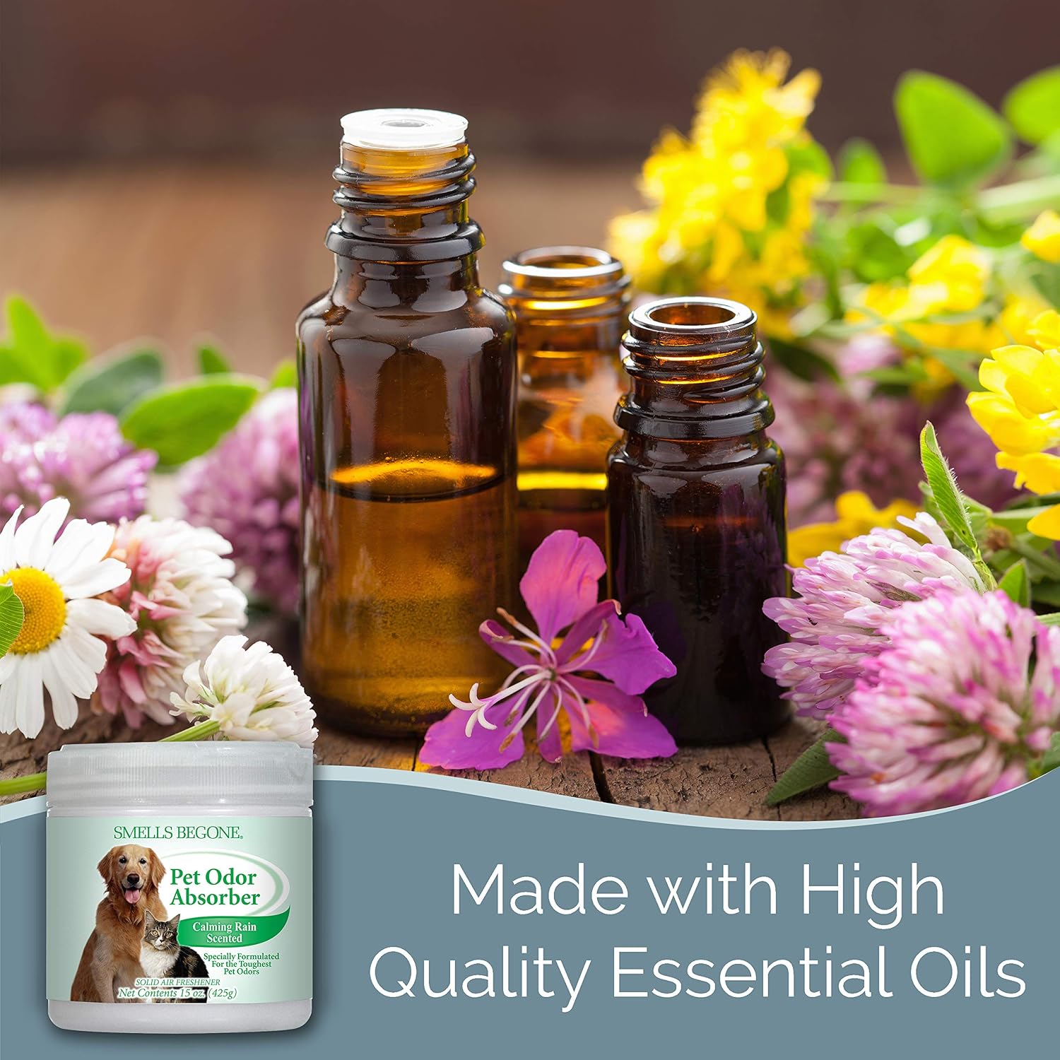 SMELLS BEGONE Air Freshener Odor Absorber Gel - 15 oz, Pack of 2 - Absorbs and Eliminates Odor in Pet Areas, Bathrooms, Cars, & Boats - Made with Essential Oils - Calming Rain Scent