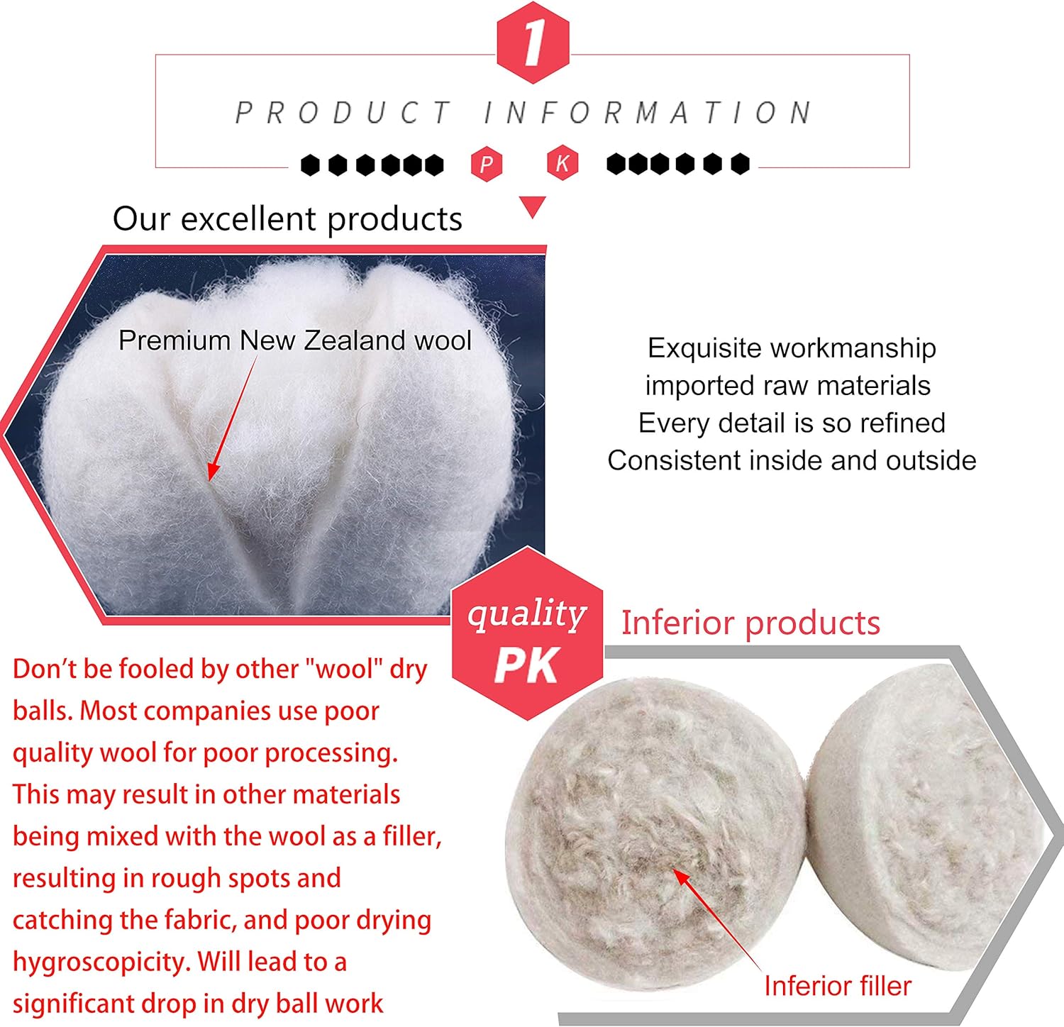 • Set of 6 Original New Zealand Wool Dryer Balls (no fillers, don't settle for knock-offs, we strive to stay ahead of competition by quality and customer service) No Chemicals or Synthetics Used (great for those with sensitive skin & babies) Shortens Drying Time (use 3 balls for small/med load, 5-6 for large) Extra-Large (larger than a tennis ball,) Handmade, Eco-friendly, Saves Energy Lasts for a Thousand-Plus Loads, Replaces Dryer Sheets & Liquid Fabric Softeners, Saves Money. (A healthy, petroleum-free alternative to plastic dryer steamer balls)