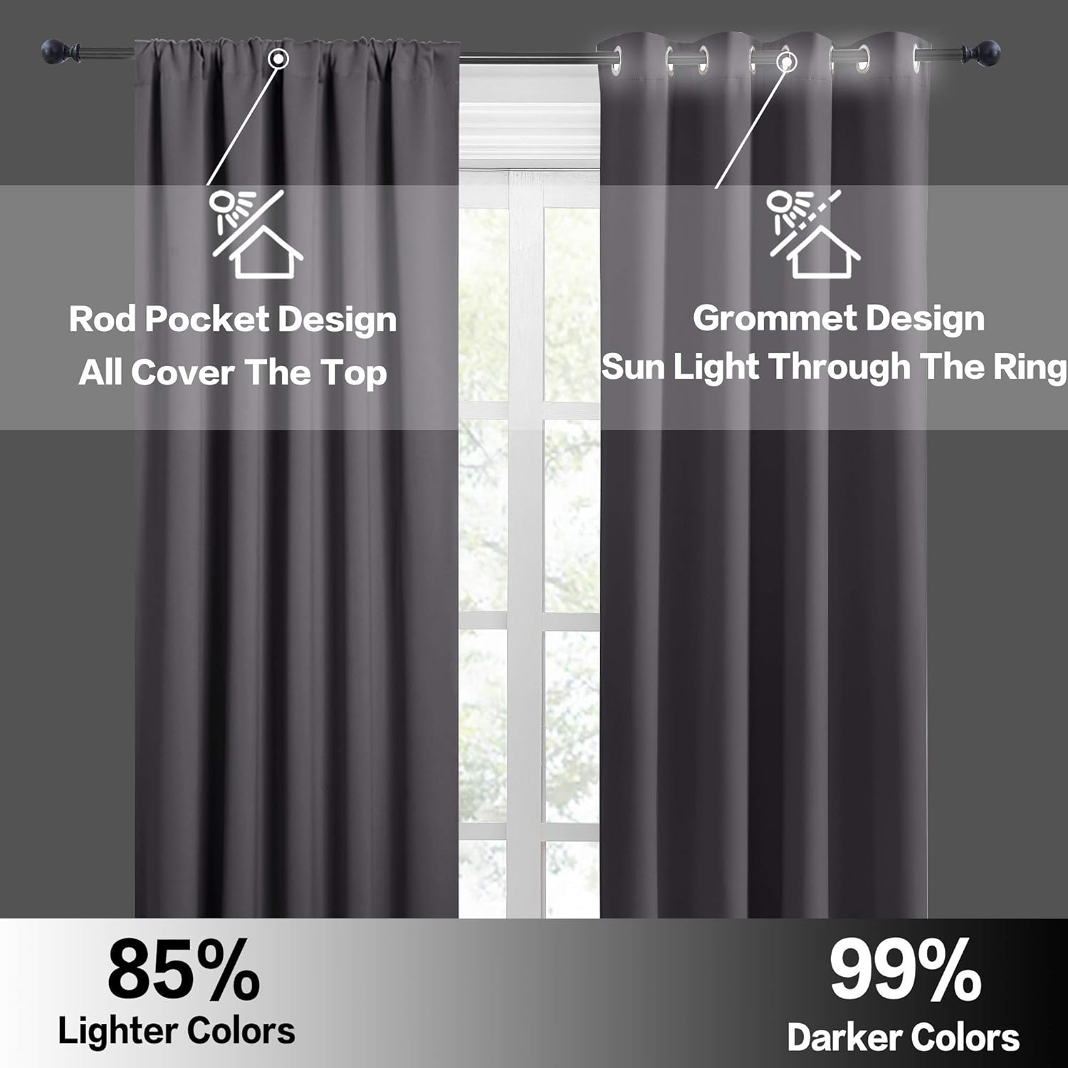 • LIGHT BLOCKING - Curtains block 85-95% sunlight and UV rays (Dark color works better) for maximum privacy and undisturbed sleep. Thermal property of the blackout curtains ensure that the room temperature is regulated. Protect your indoor furniture from directly exposing to the sun.