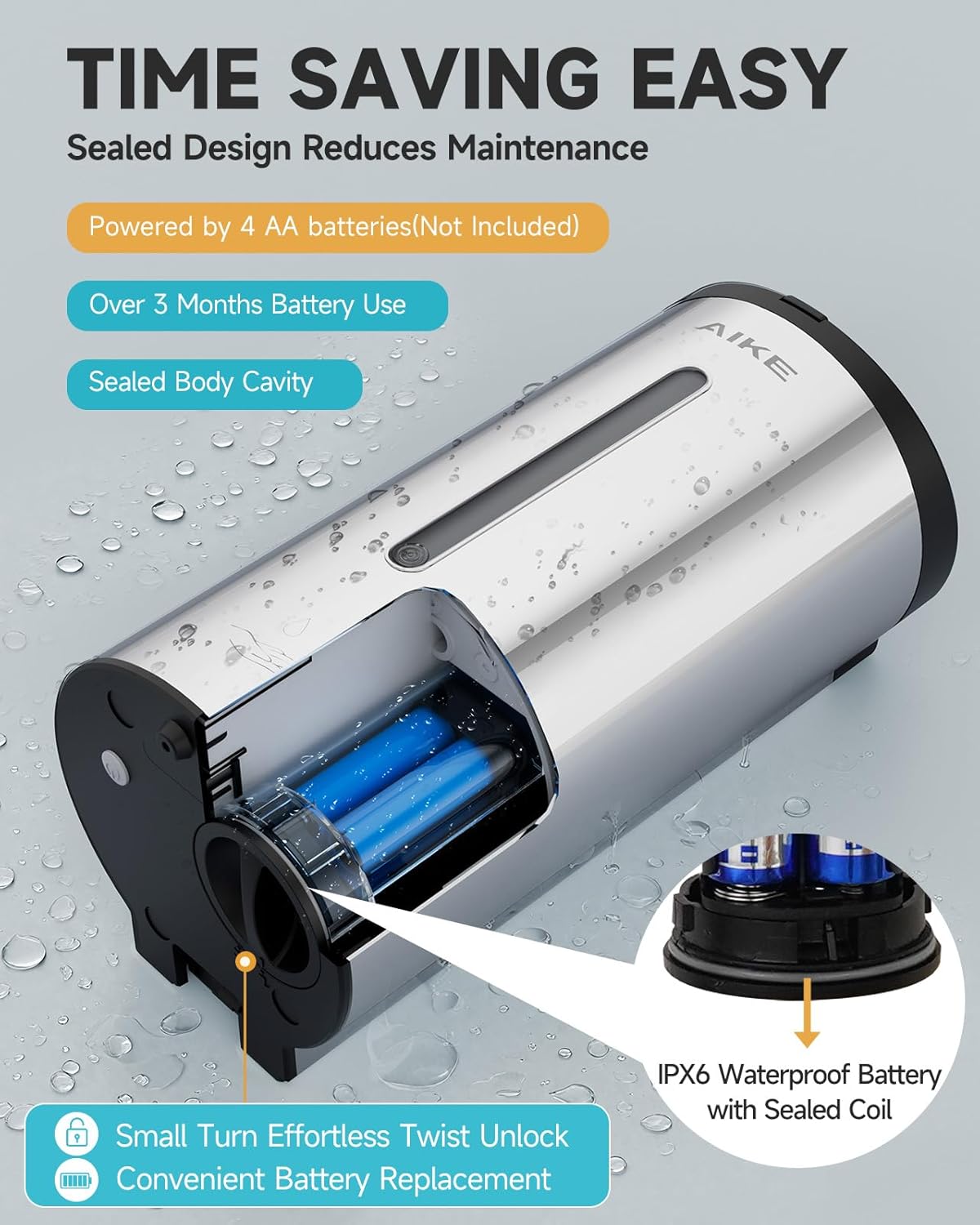 AIKE Automatic Wall Mount Liquid Soap Dispenser, Commercial Stainless Steel with 25oz Large Capacity Save Time Effort and Cost,Model AK1205 (Polished)