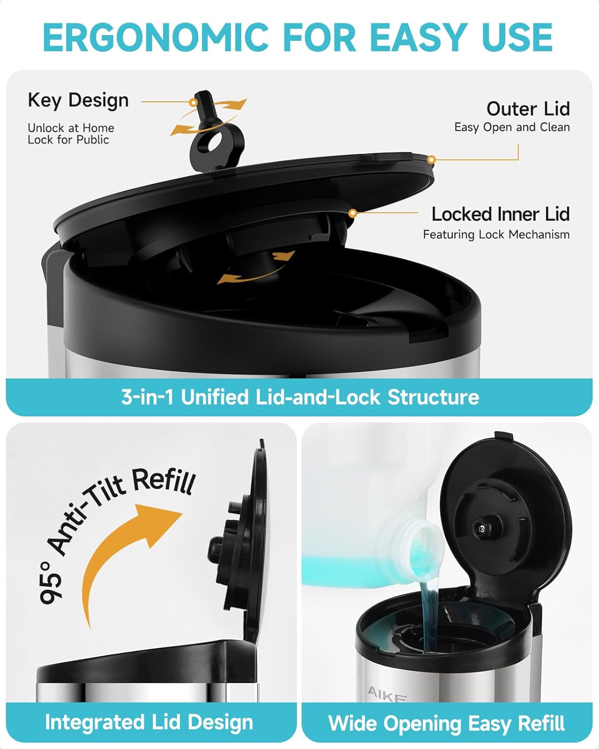 • Hassle-Free: 25oz Large Capacity Stainless Steel for Commercial Use. Touchless for All Family Members at Home
