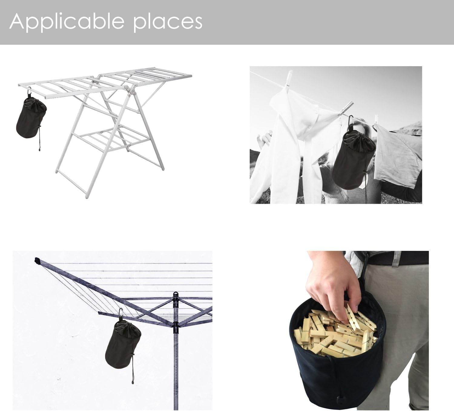 • Function feature : the clothespins bags,easy to attach to the clothes line,rotary dryer,drying rack and belt.,