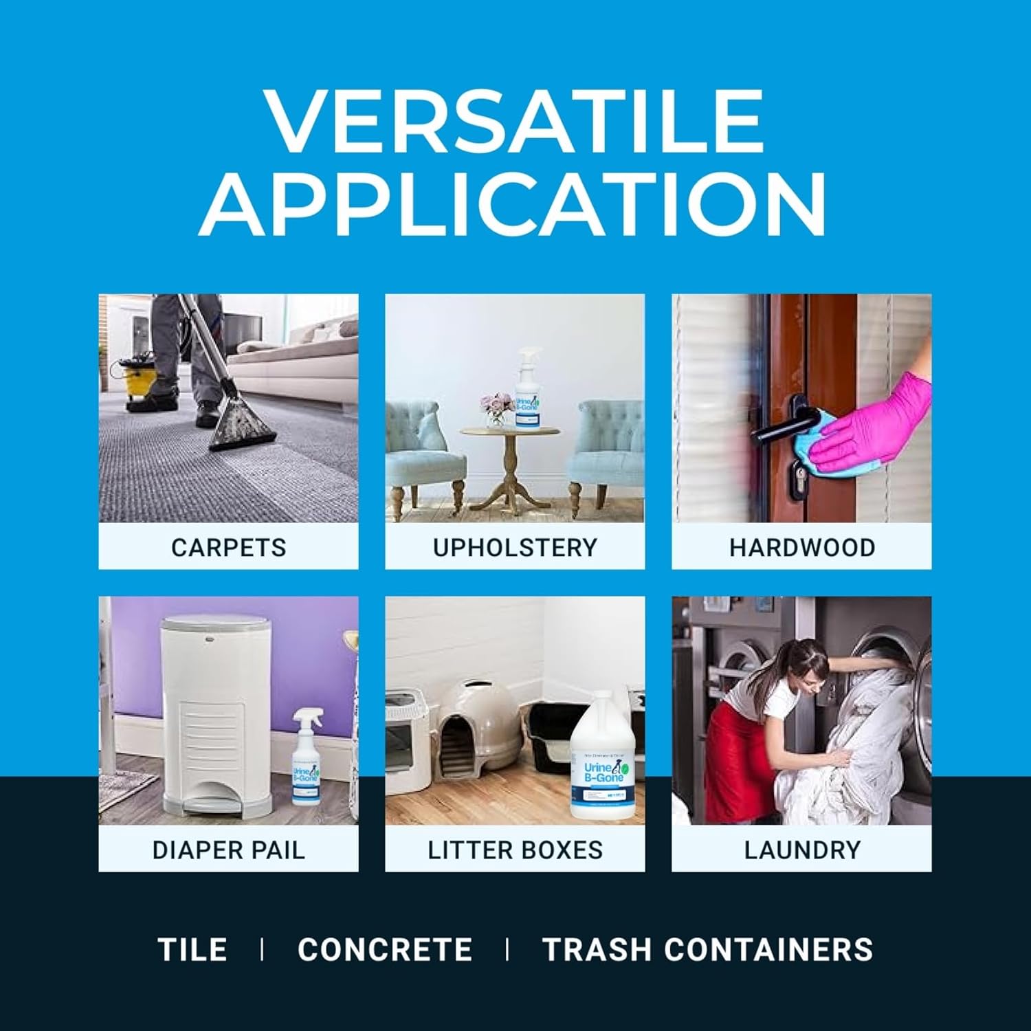 • Versatile Cleaning Solution: Beyond pet stains, Urine B-Gone is ideal for a variety of applications; Use it in your laundry to pre-spray soiled areas or even in drains, urinals, and toilets; This all-in-one cleaner & odor remover makes tackling tough stains and odors simple and efficient